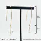 Delicate Small stone drop earrings on a sleek V-threader wire crafted from hypoallergenic 316 stainless steel. Approx. 5–6cm long with stones. total drop length. Choose between: Crystal Quartz or Rose Quartz hearts.