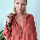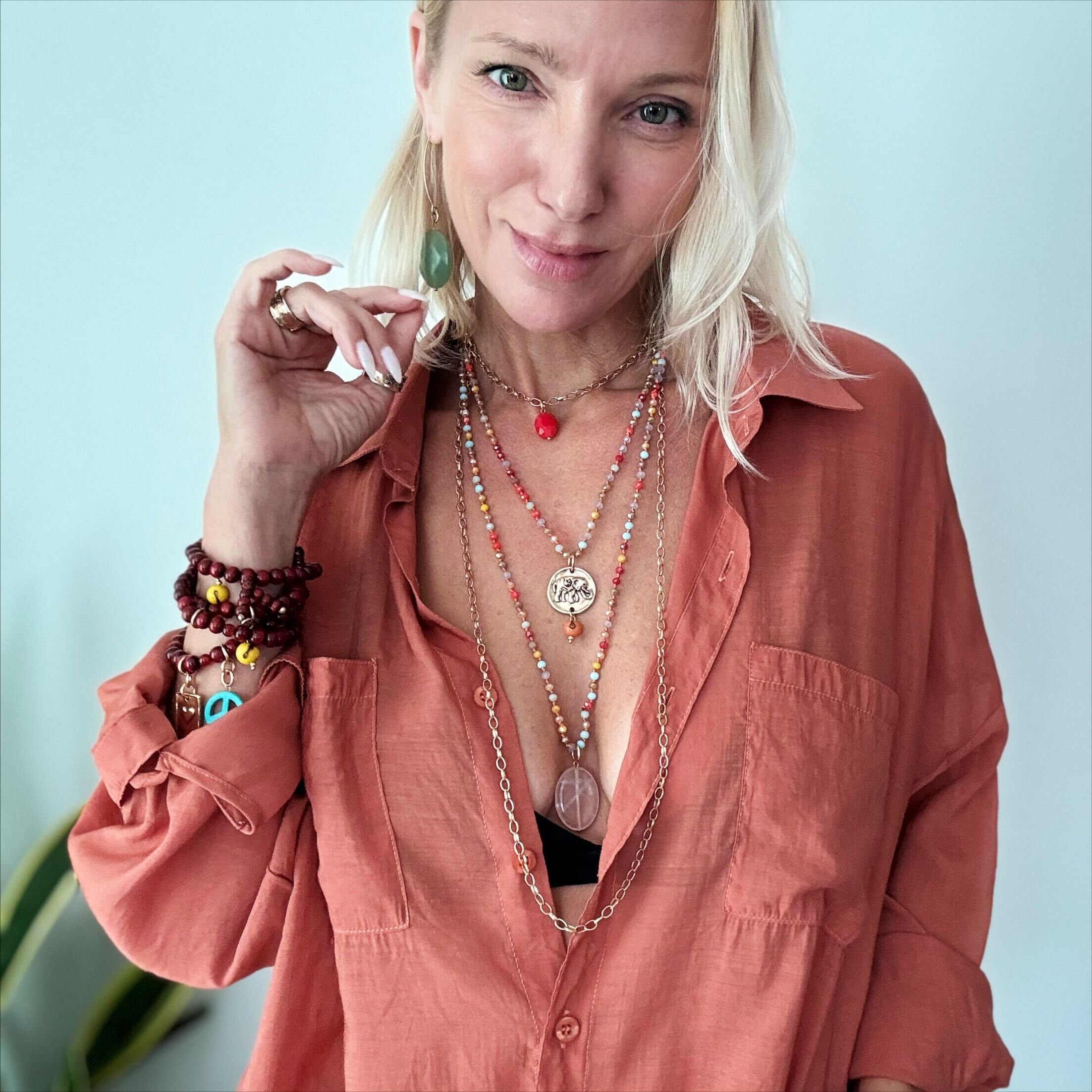 Original Necklace Full Length: 44-50" **MODELS NECK MEASURES 15" IN CIRCUMFERENCE. PLEASE NOTE THAT NECKLACES MAY LAY DIFFERENTLY BASED ON YOUR MEASUREMENTS**