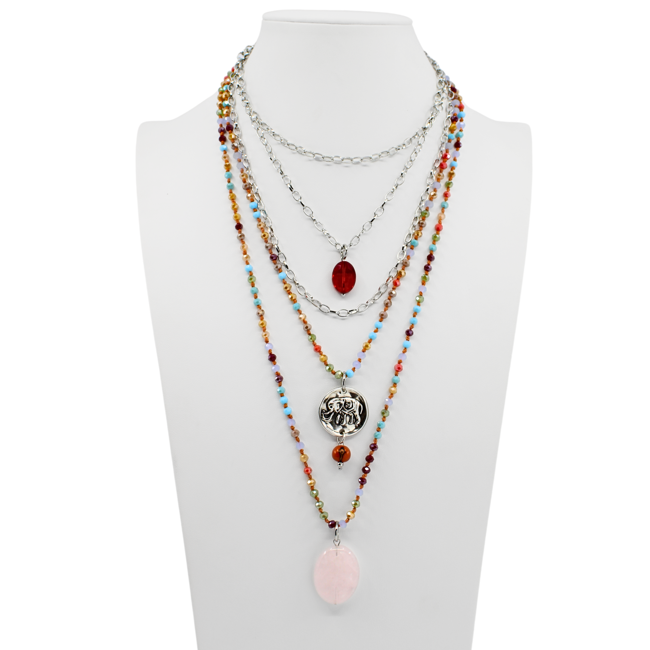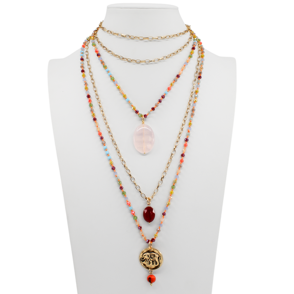 (1) Multicolor Original beaded Necklace with rose quartz and orange açaí seed