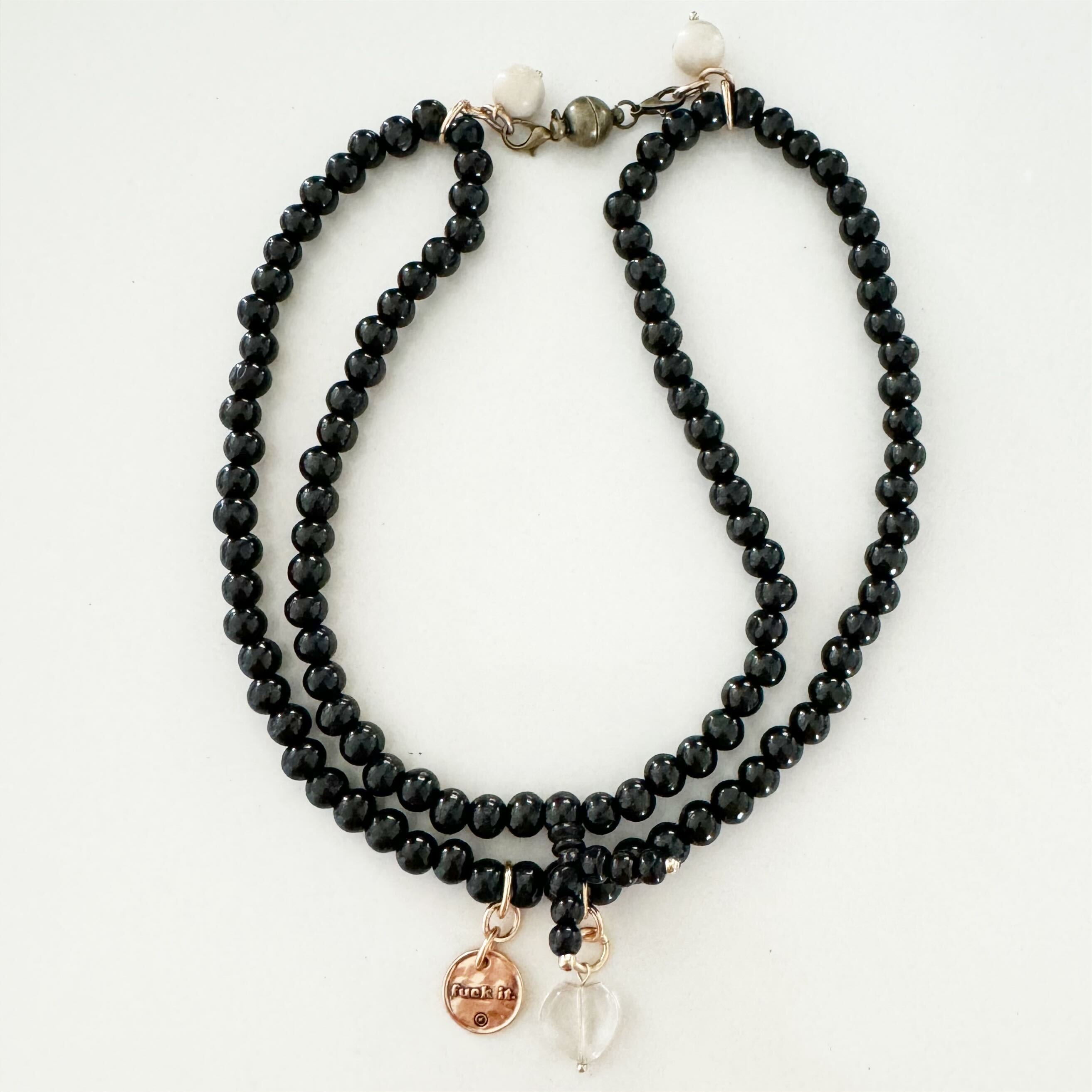Katia loves to embrace all of the imperfections that occur when working with organic materials. Due to the crystals and crystal beads being an organic material, shape, clarity, and color vary and may have pits, cracks, and other marks that Mother Nature provided to add interest and beauty.