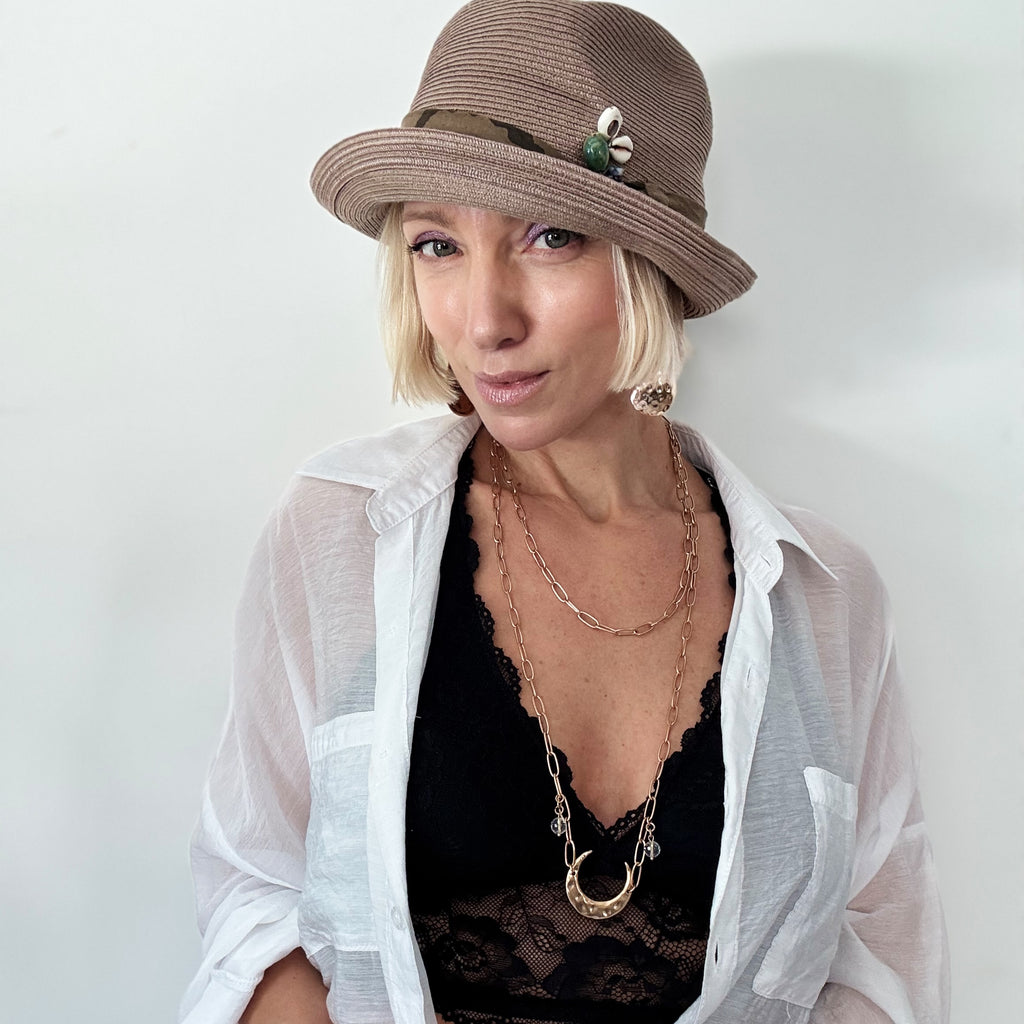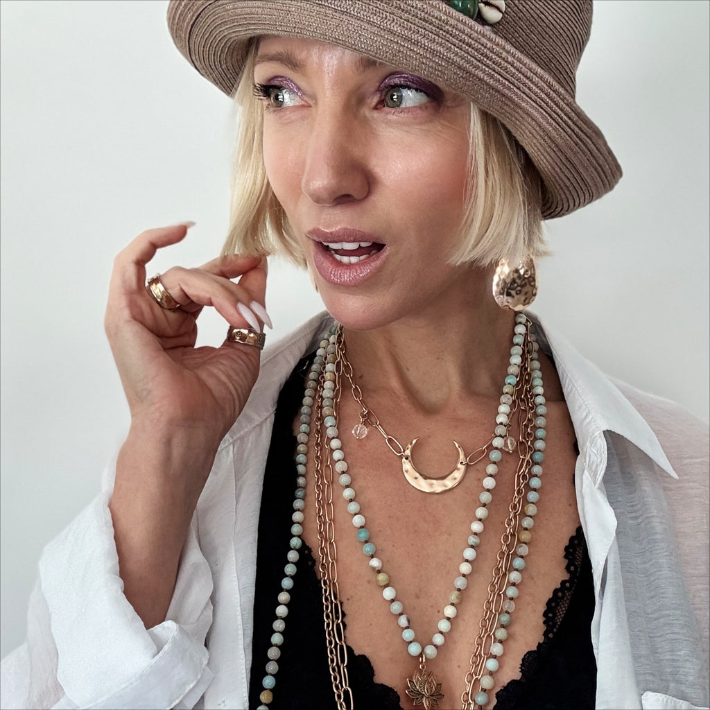 Katia loves to embrace all of the imperfections that occur when working with organic materials. Due to the crystals and crystal beads being an organic material, shape, clarity, and color vary and may have pits, cracks, and other marks that Mother Nature provided to add interest and beauty.
