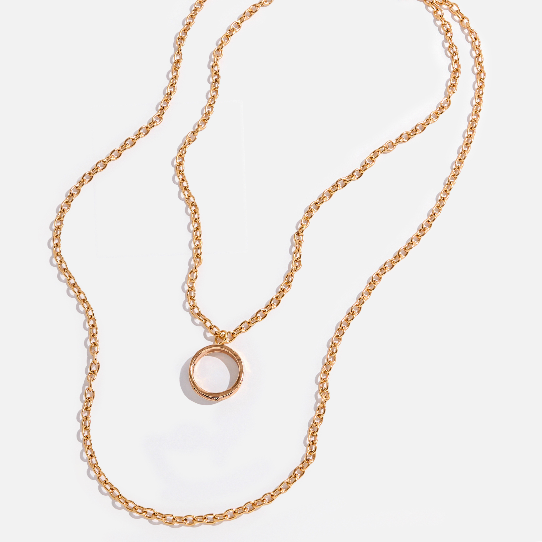 Essential chain necklace with open ring pendant; message inscribed on exterior and interior band.