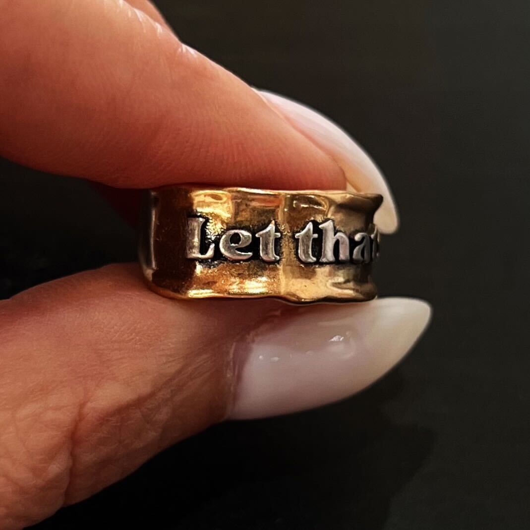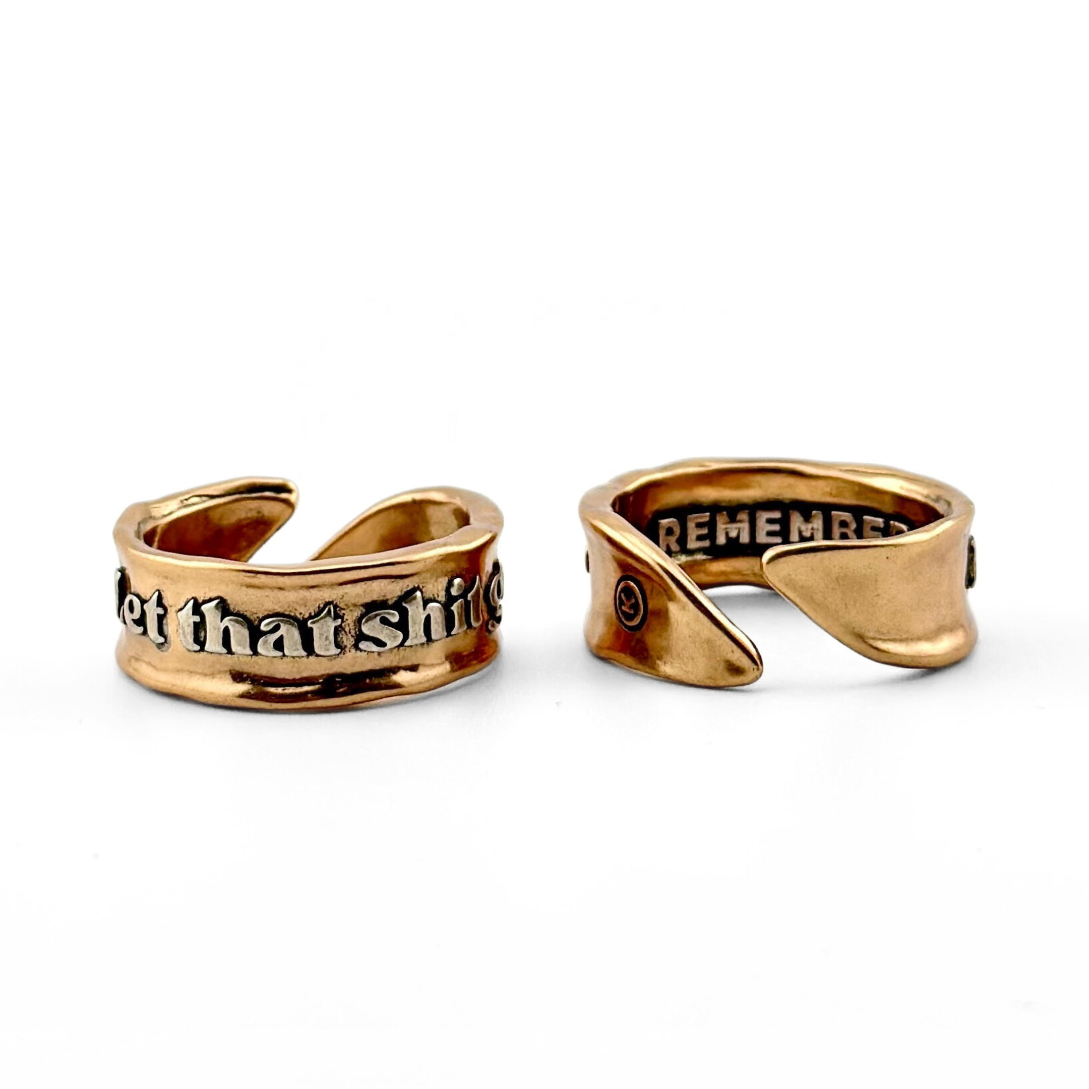 The Remember Ring was created from a prototype designed during the beginning years of Katia Designs. Wearing the ring on her thumb (although you can wear it on any finger you'd prefer) she would catch a glimpse of the message as her hands rested on the steering wheel while she was driving. It was a moment for her to take a breath and remember those simple words she chose for herself.