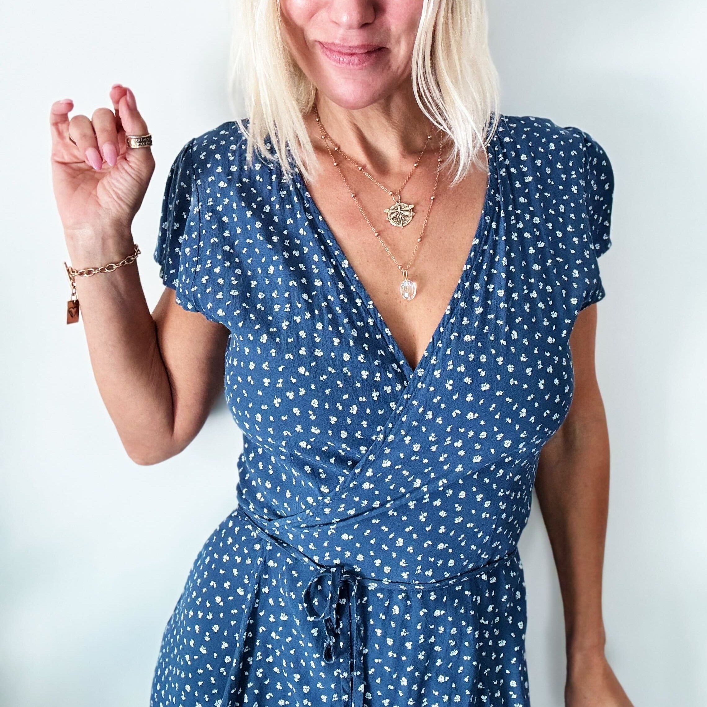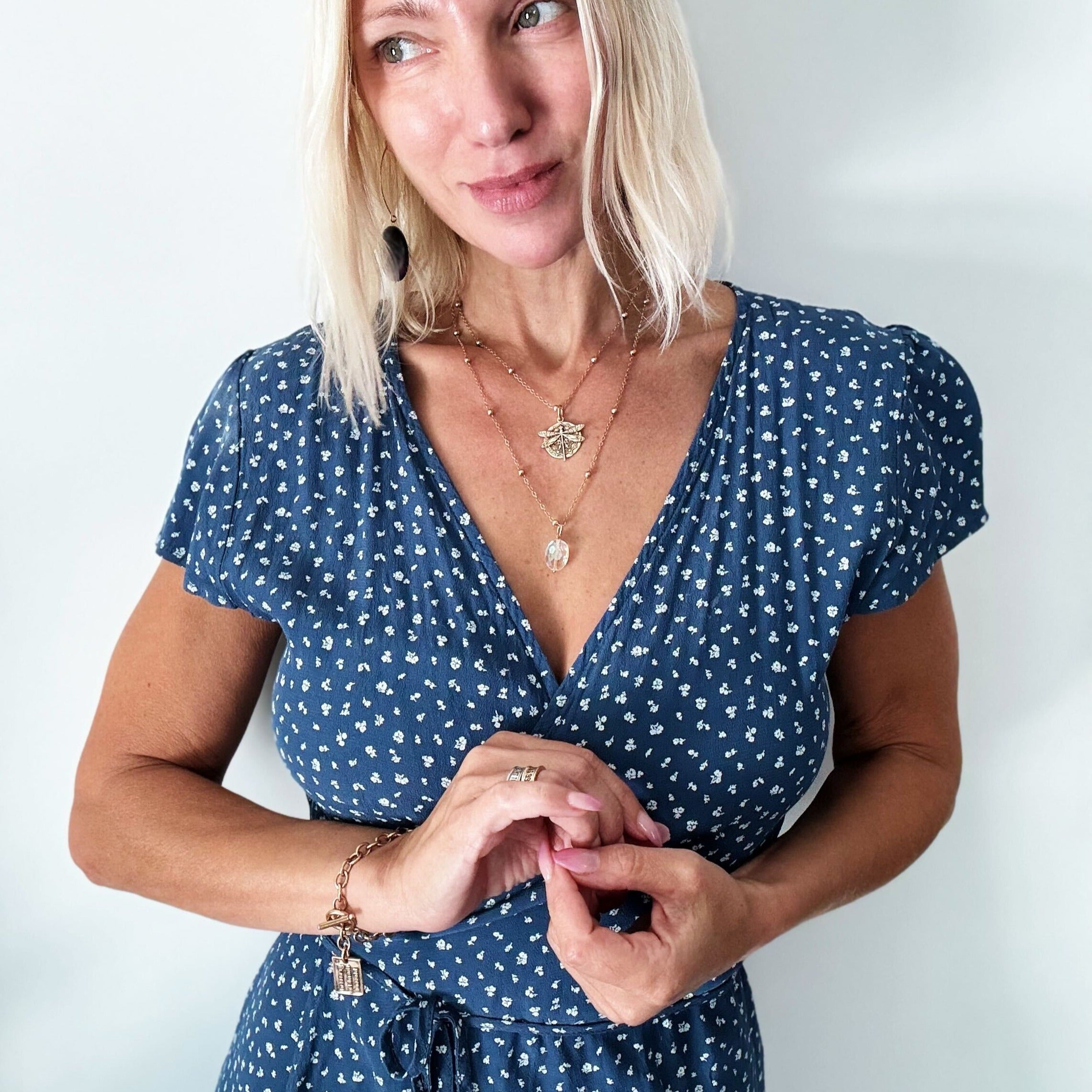 Dainty Full Length: 36" **MODELS NECK MEASURES 15" IN CIRCUMFERENCE. PLEASE NOTE THAT NECKLACES MAY LAY DIFFERENTLY BASED ON YOUR MEASUREMENTS**