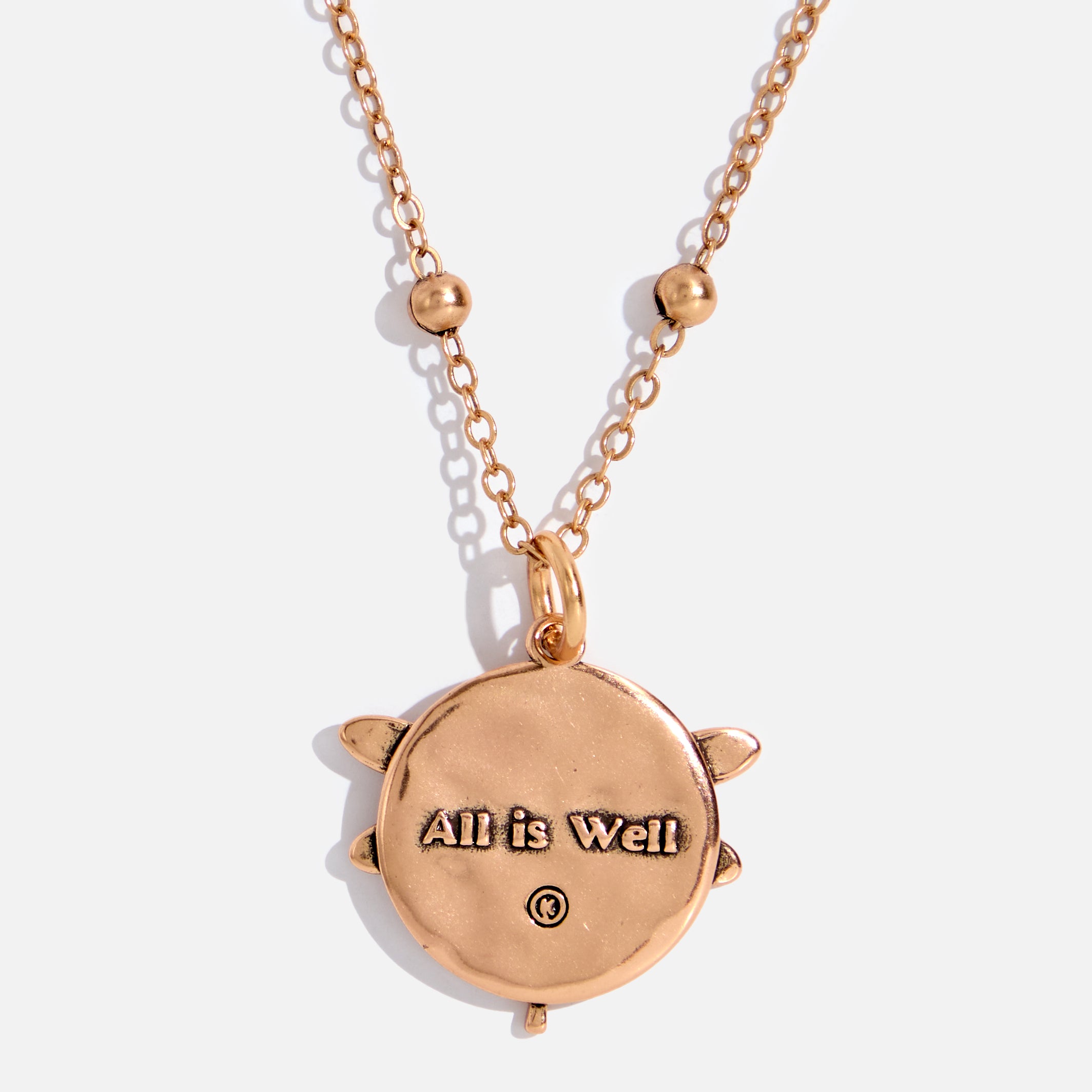 Dainty satellite chain necklace with dragonfly pendant and iridescent crystal accent stone; message inscribed on reverse.