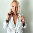 Katia loves to embrace all of the imperfections that occur when working with organic materials. Due to the crystals and crystal beads being an organic material, shape, clarity, and color vary and may have pits, cracks, and other marks that Mother Nature provided to add interest and beauty.