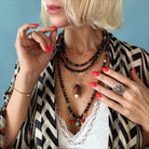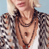 Long Fusion Full Length: 55-62" **MODELS NECK MEASURES 15" IN CIRCUMFERENCE. PLEASE NOTE THAT NECKLACES MAY LAY DIFFERENTLY BASED ON YOUR MEASUREMENTS**
