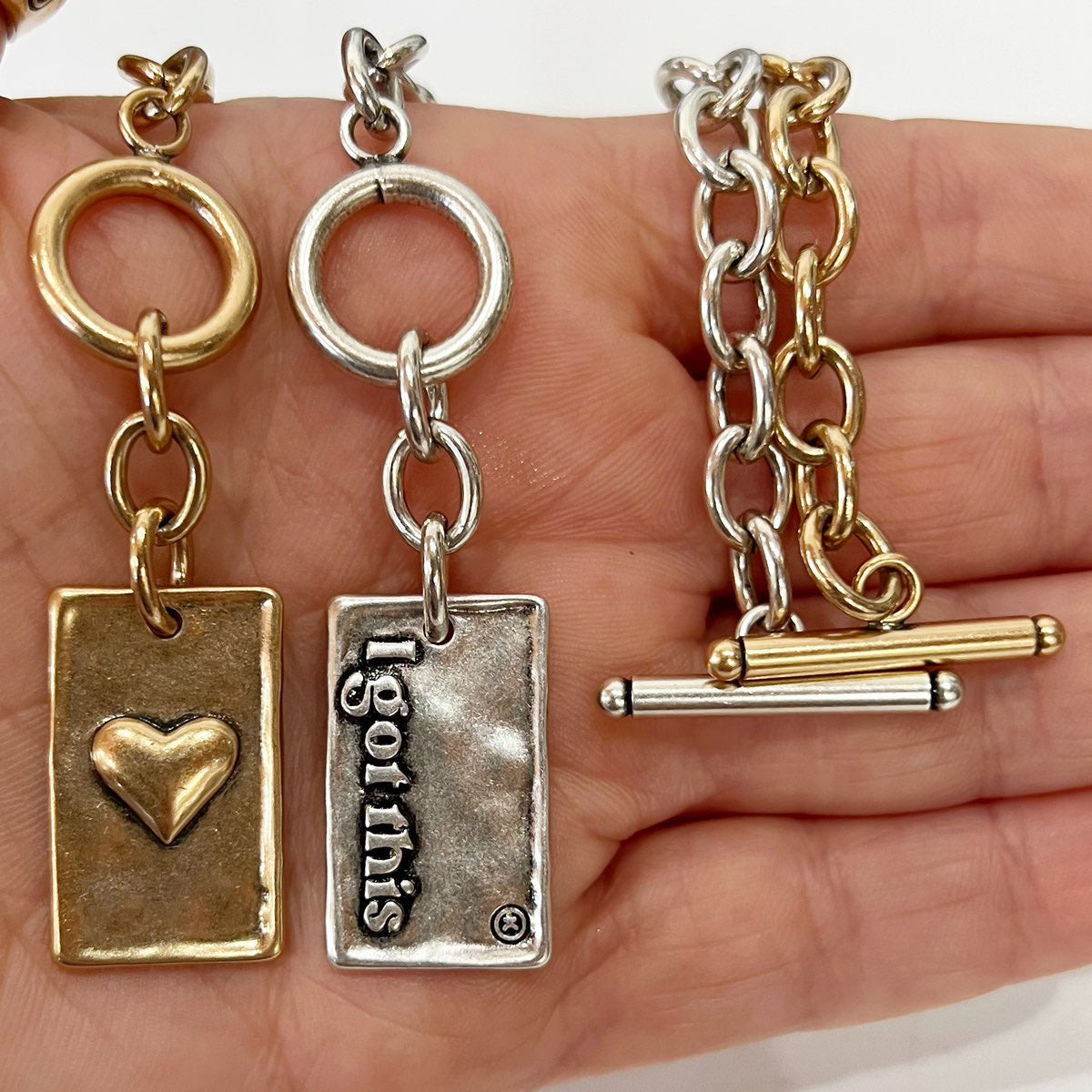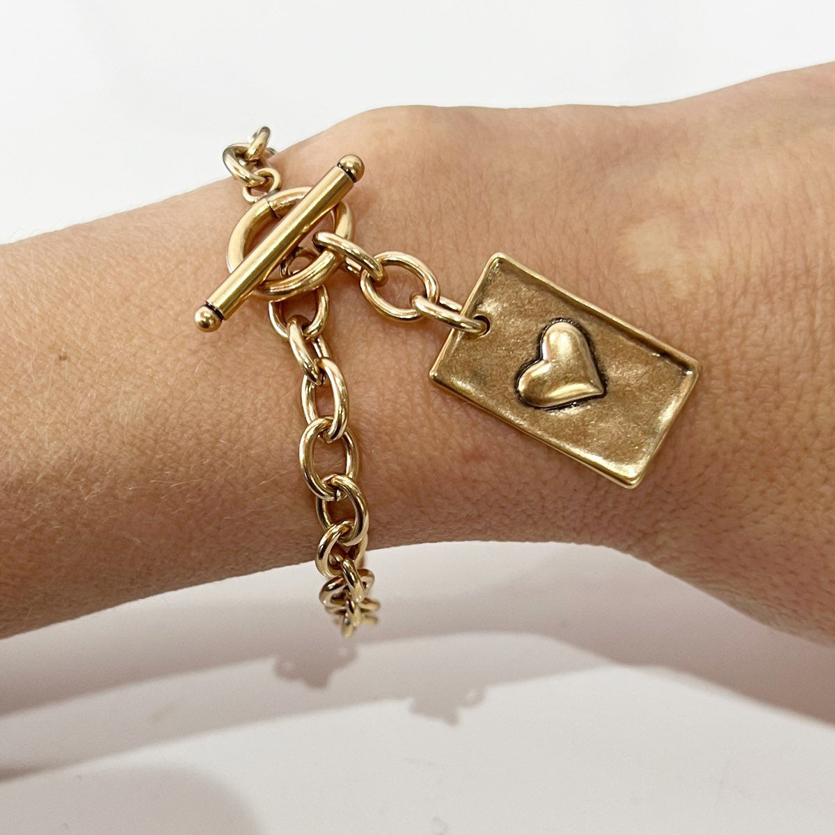 available in 7", 7.5", 8" or 8.5" (includes toggle closure) - 1" x 0.5" plated brass rectangular pendant