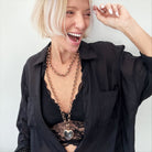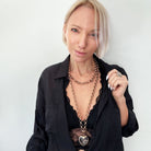 Original Chain: 48" **MODELS NECK MEASURES 15" IN CIRCUMFERENCE. PLEASE NOTE THAT NECKLACES MAY LAY DIFFERENTLY BASED ON YOUR MEASUREMENTS**