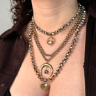 Regular Fusion Full Length: 36-48" **MODELS NECK MEASURES 15" IN CIRCUMFERENCE. PLEASE NOTE THAT NECKLACES MAY LAY DIFFERENTLY BASED ON YOUR MEASUREMENTS**