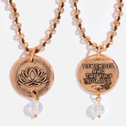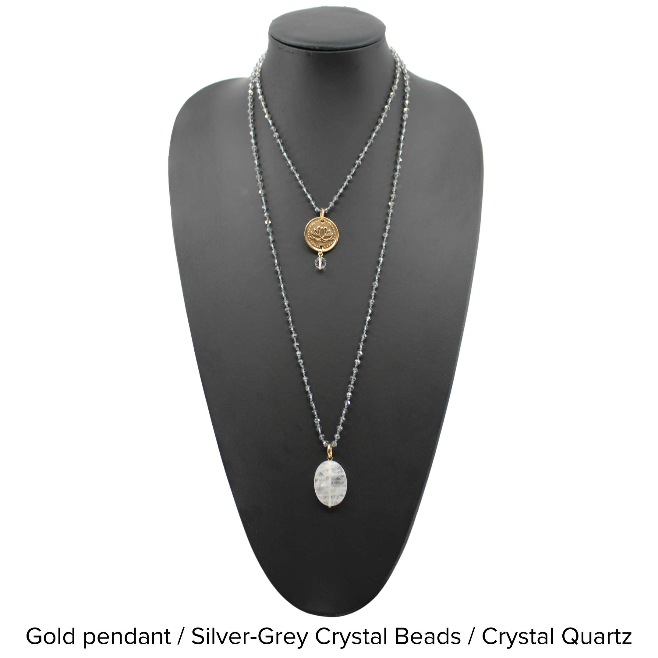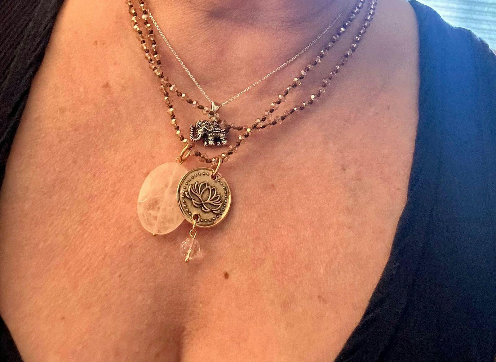 Katia loves to embrace all of the imperfections that occur when working with organic materials. Due to the crystals and crystal beads being an organic material, shape, clarity, and color vary and may have pits, cracks, and other marks that Mother Nature provided to add interest and beauty.