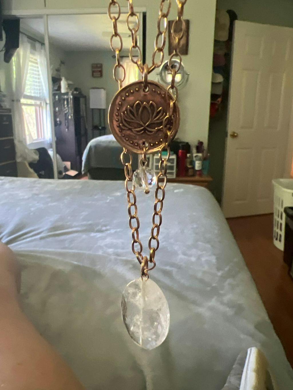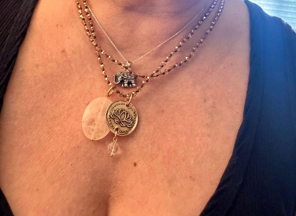 Katia loves to embrace all of the imperfections that occur when working with organic materials. Due to the crystals and crystal beads being an organic material, shape, clarity, and color vary and may have pits, cracks, and other marks that Mother Nature provided to add interest and beauty.