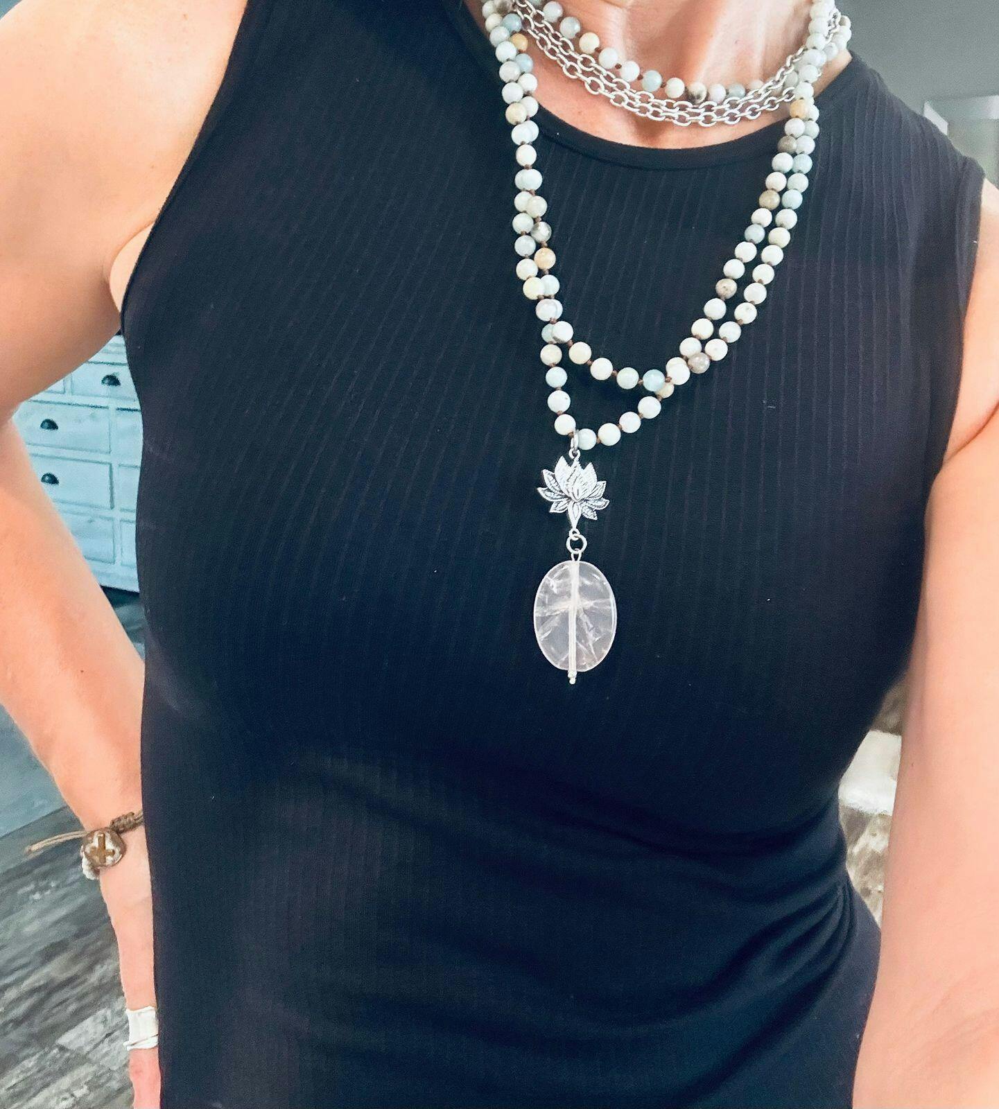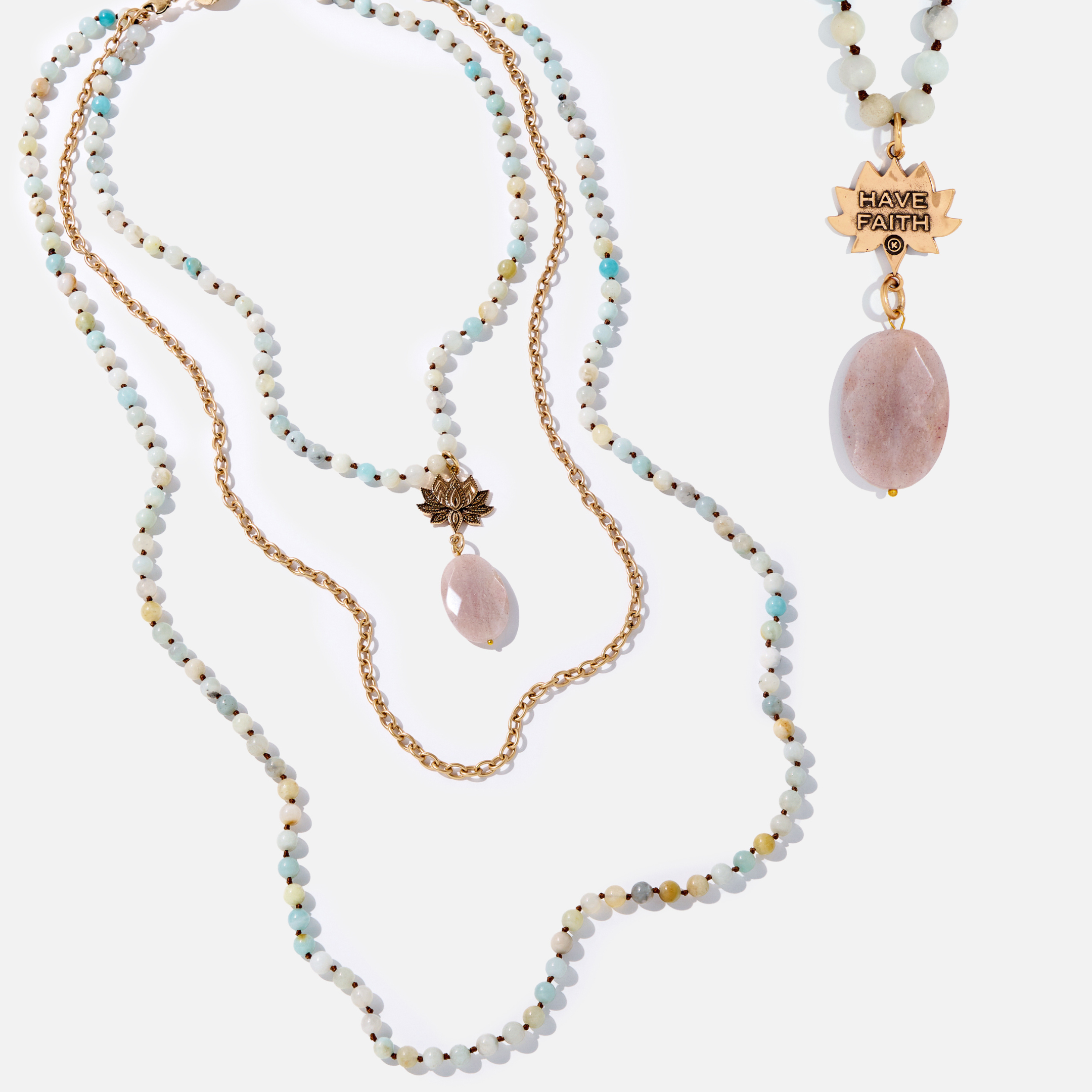 Have Faith Lotus Amazonite Long Chain Fusion Necklace