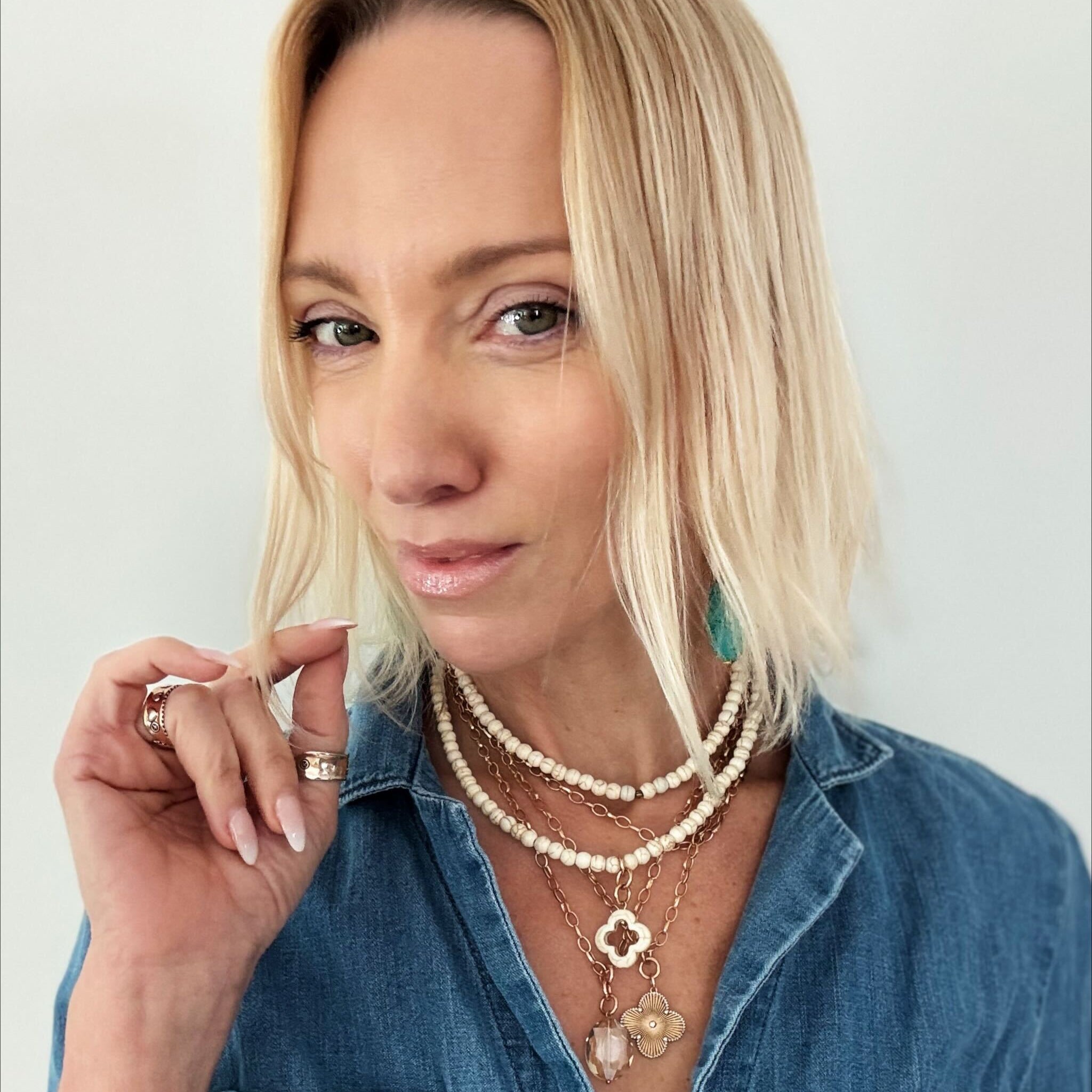 Katia loves to embrace all of the imperfections that occur when working with organic materials. Due to the crystals and crystal beads being an organic material, shape, clarity, and color vary and may have pits, cracks, and other marks that Mother Nature provided to add interest and beauty.