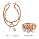 - Can be worn as a wrap bracelet or a single strand or double necklace.