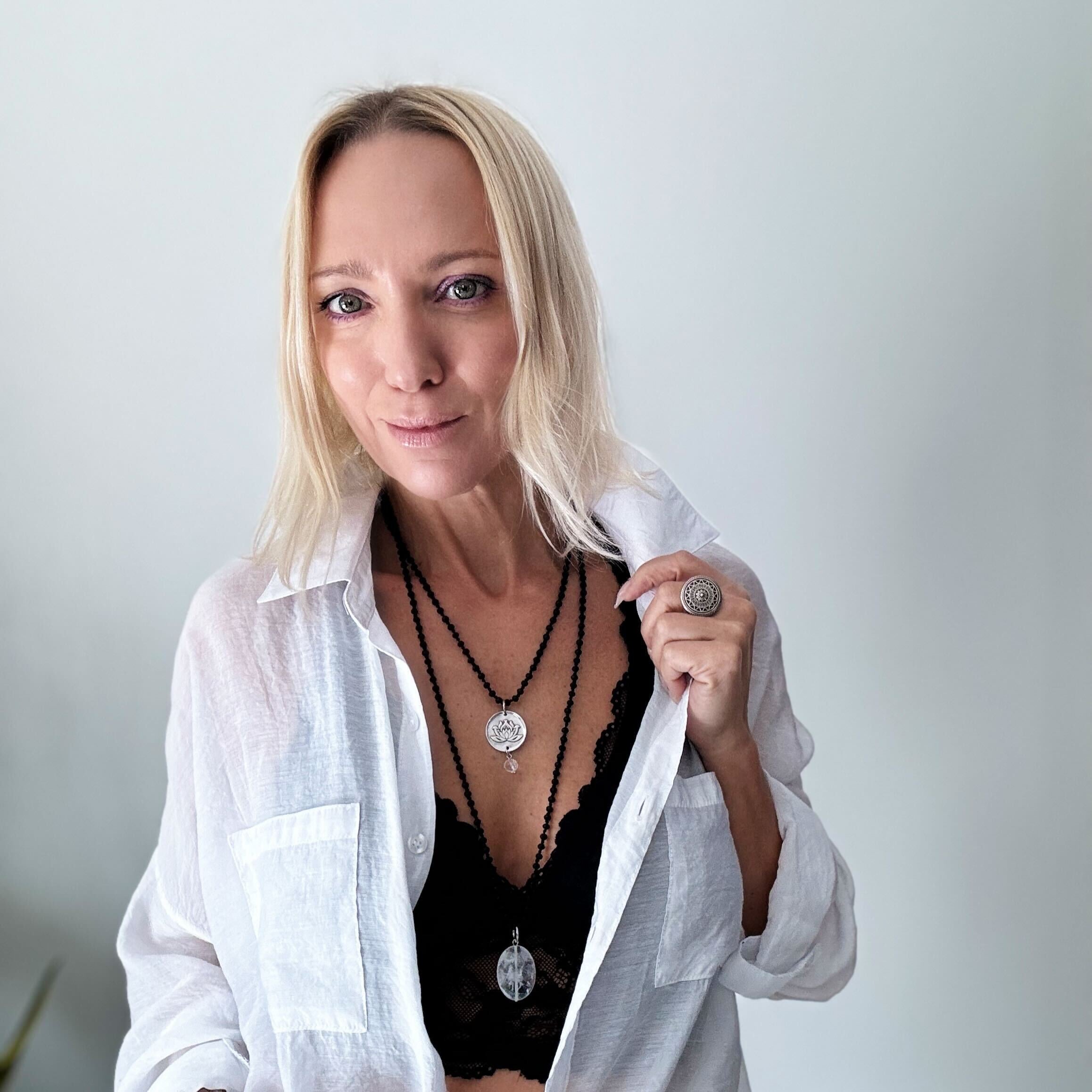 Katia loves to embrace all of the imperfections that occur when working with organic materials. Due to the crystals and crystal beads being an organic material, shape, clarity, and color vary and may have pits, cracks, and other marks that Mother Nature provided to add interest and beauty.