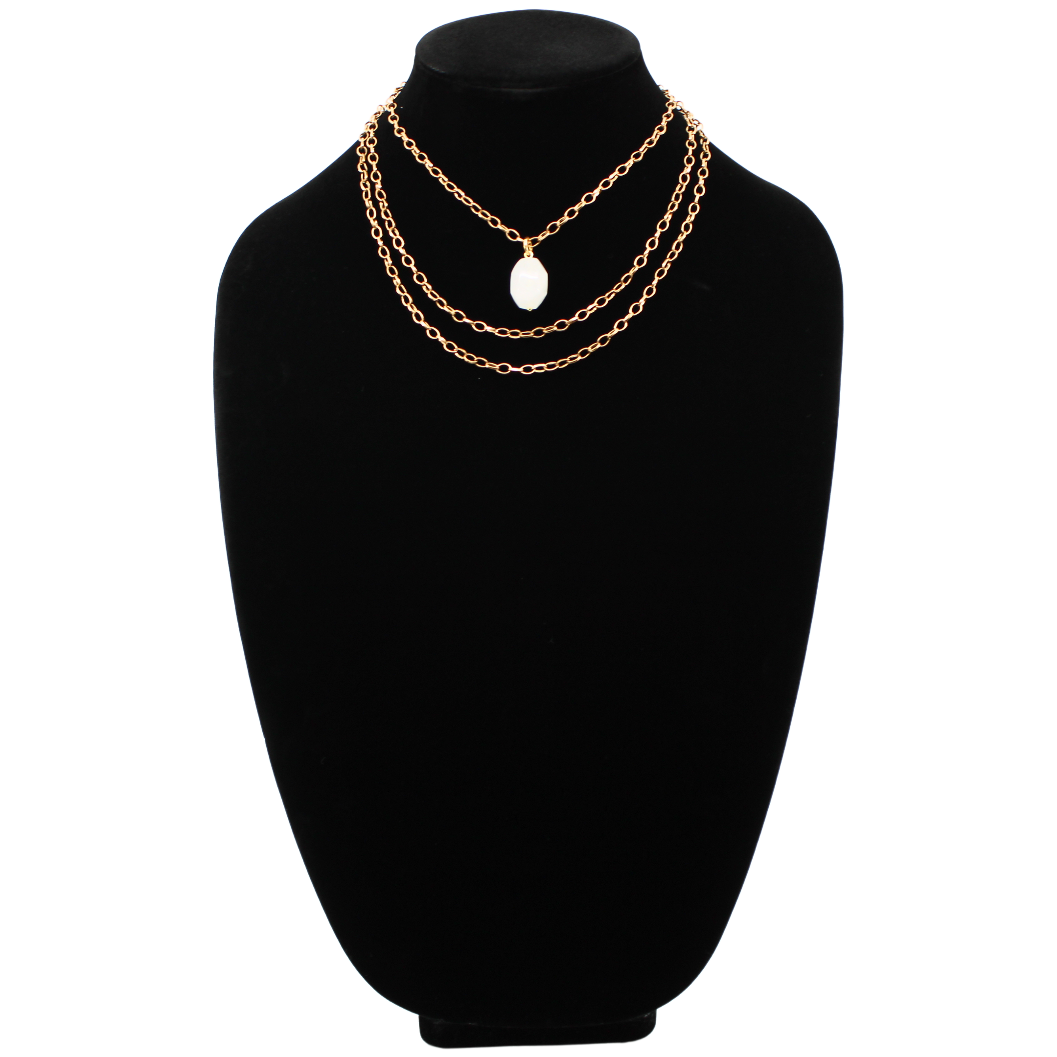 Original brass-plated stainless steel layering chain necklace with crystal quartz stone