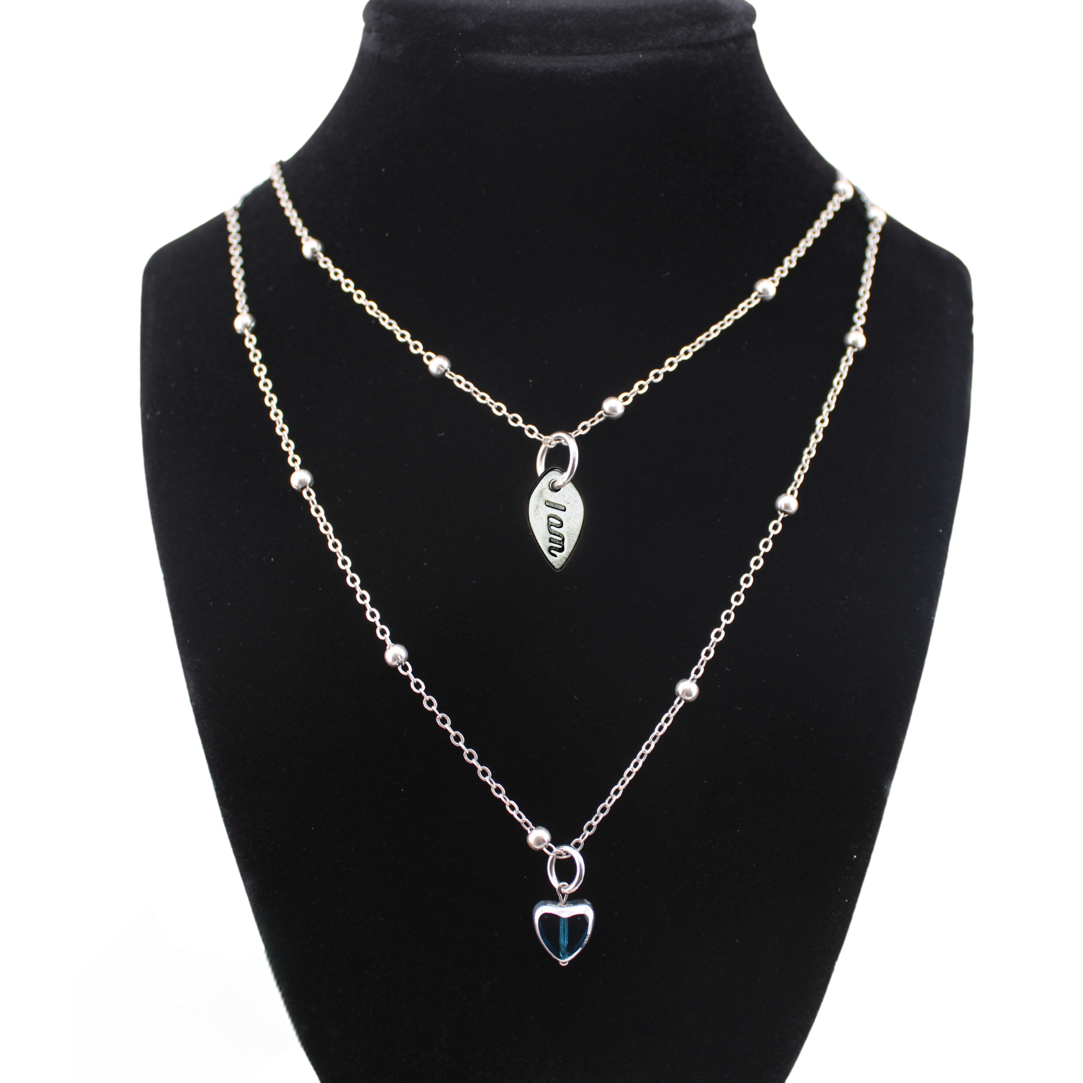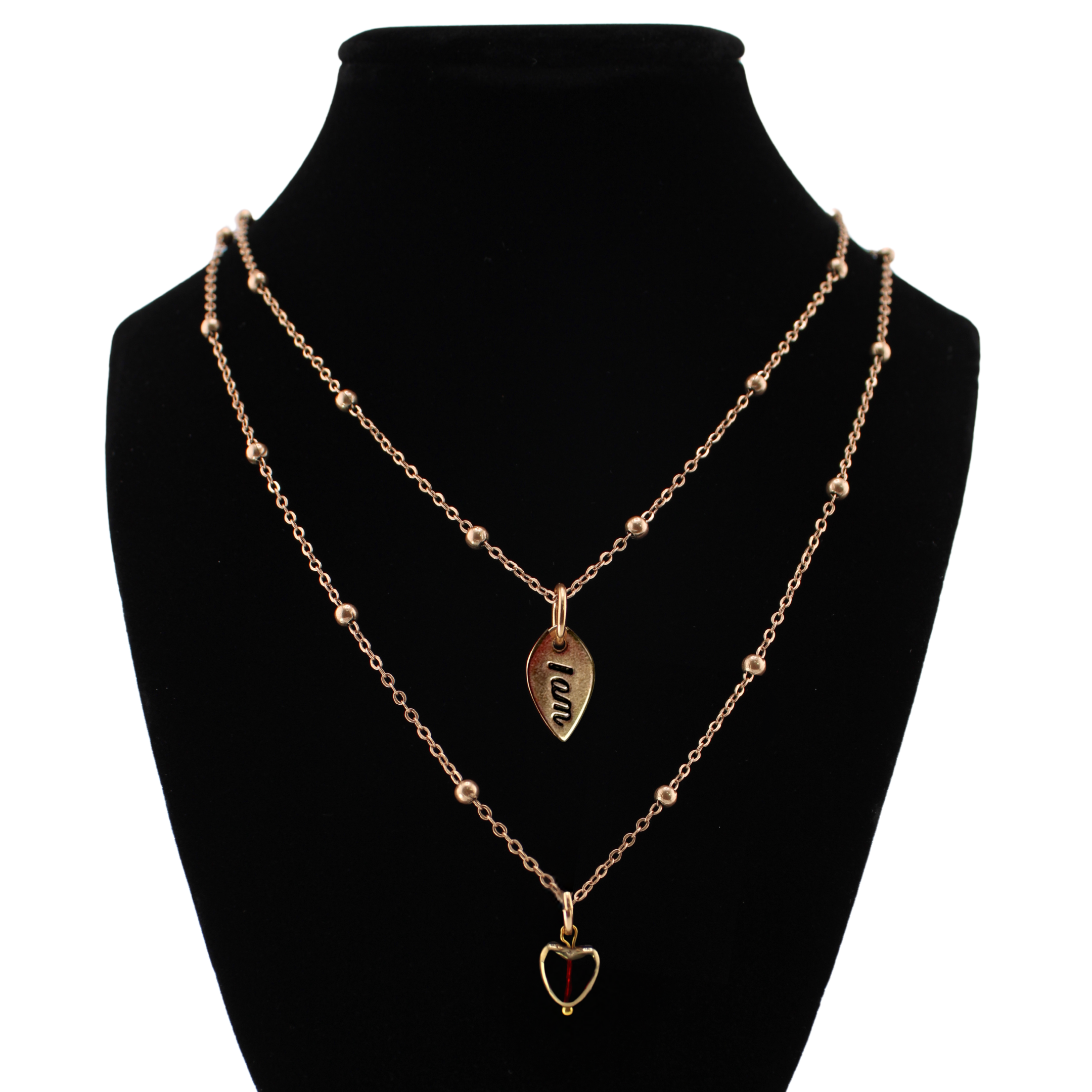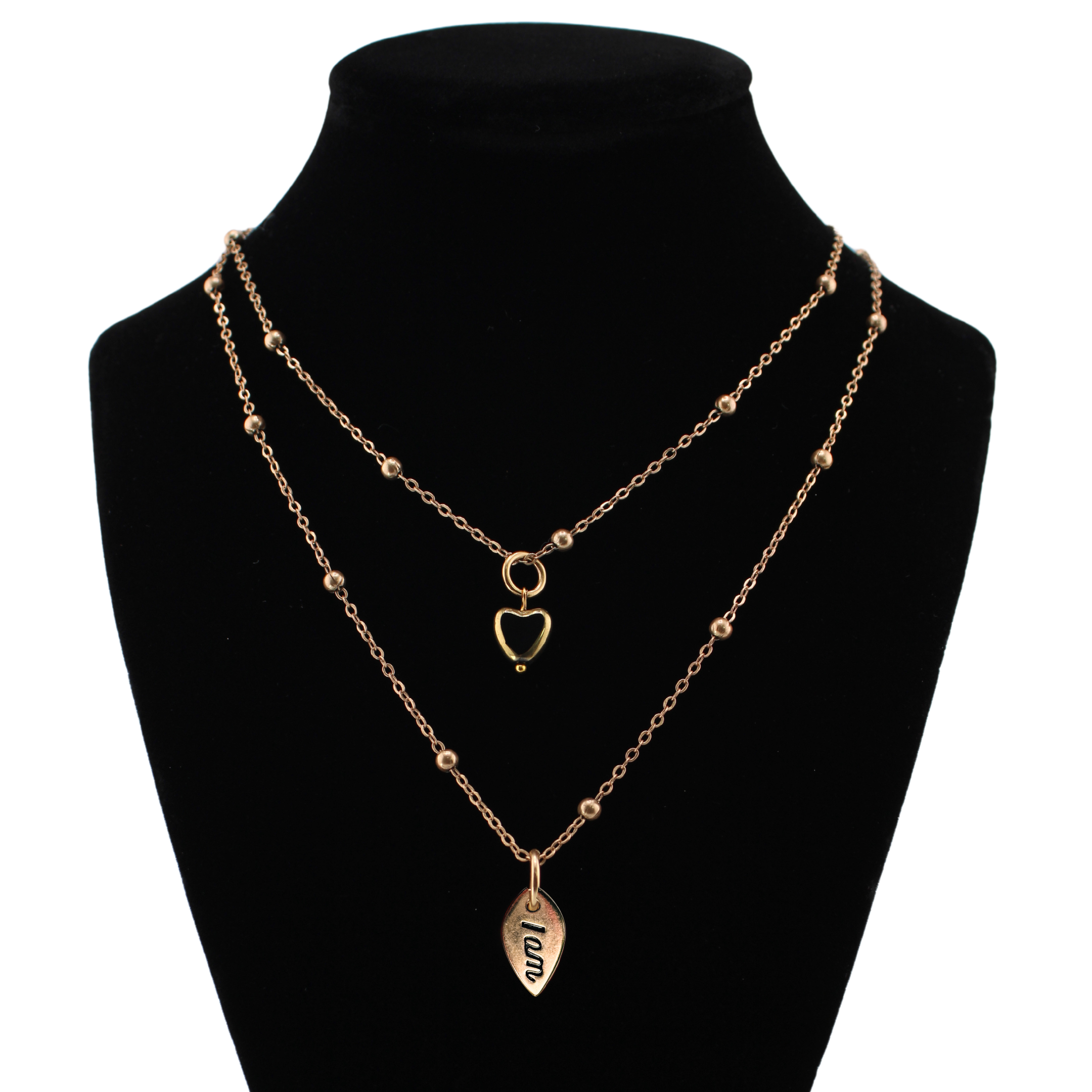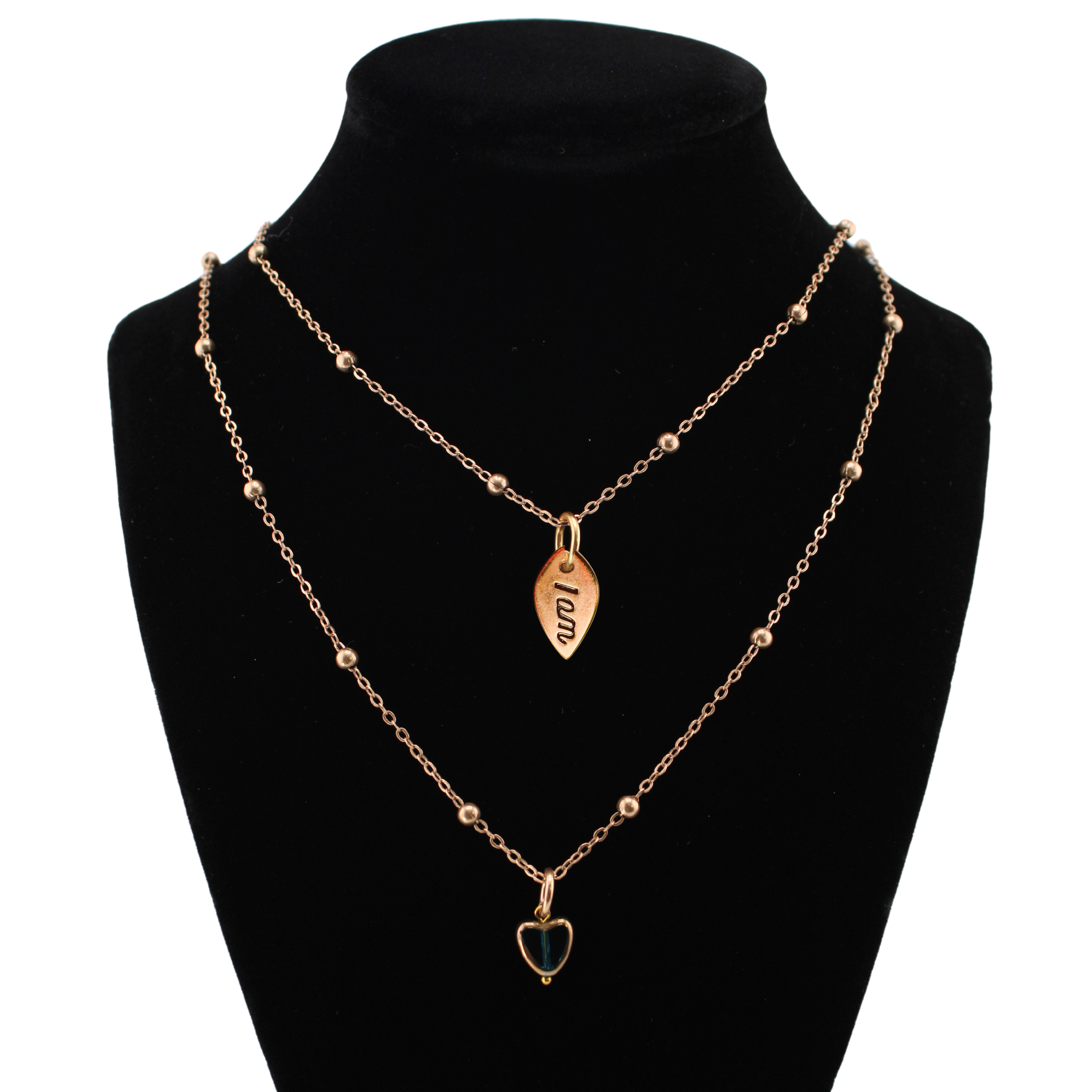 - 36" plated brass satellite chain with tag and crystal heart accent