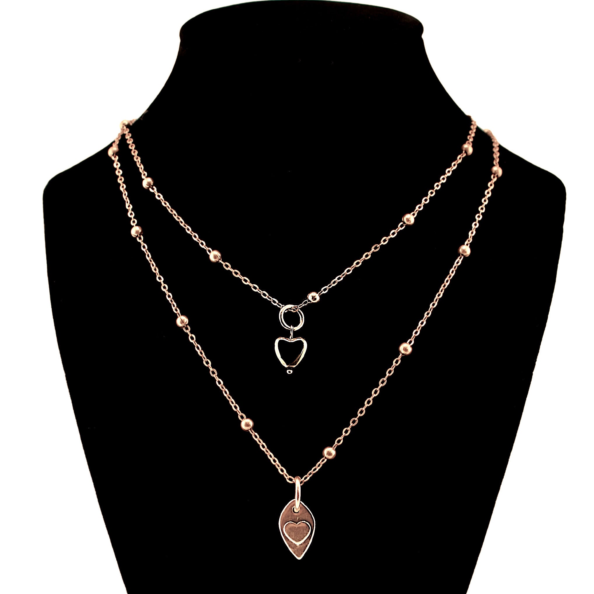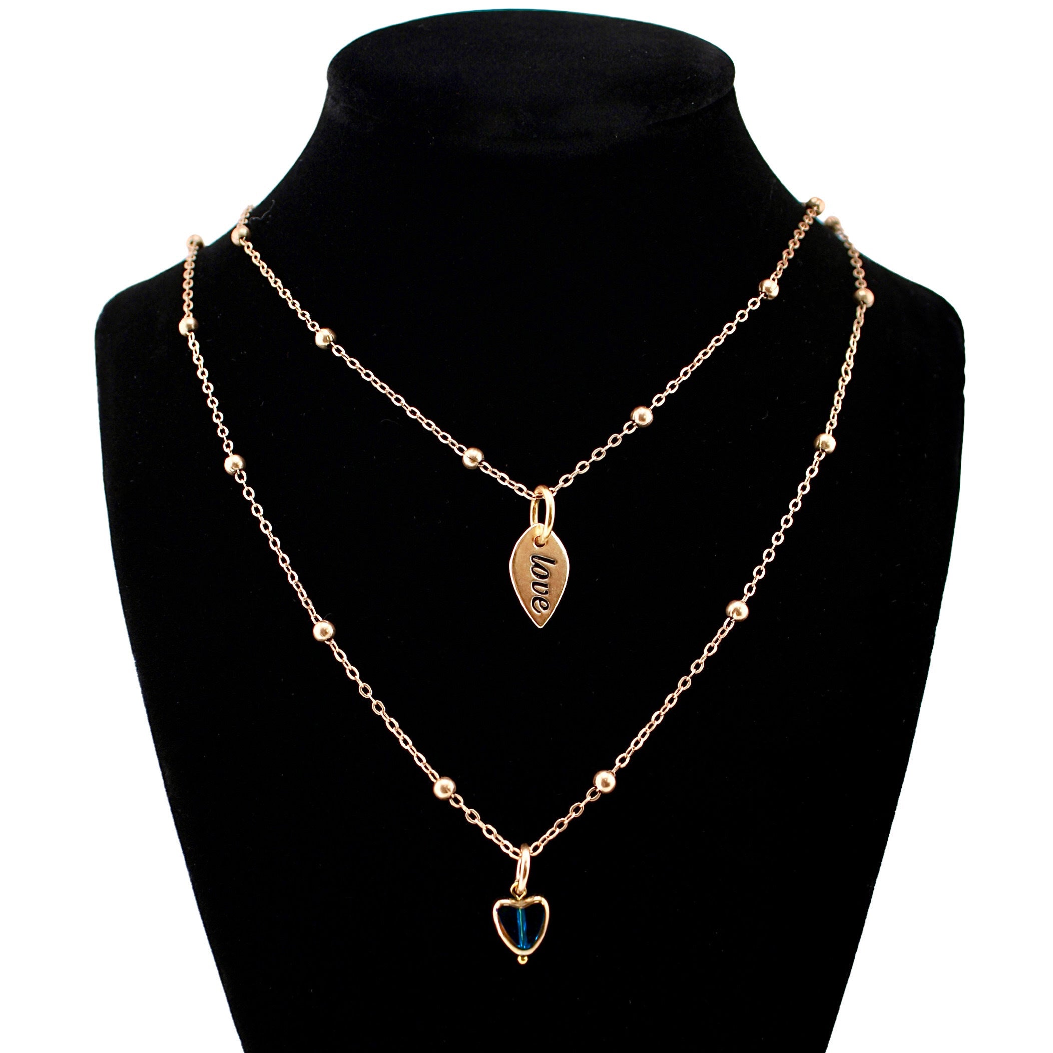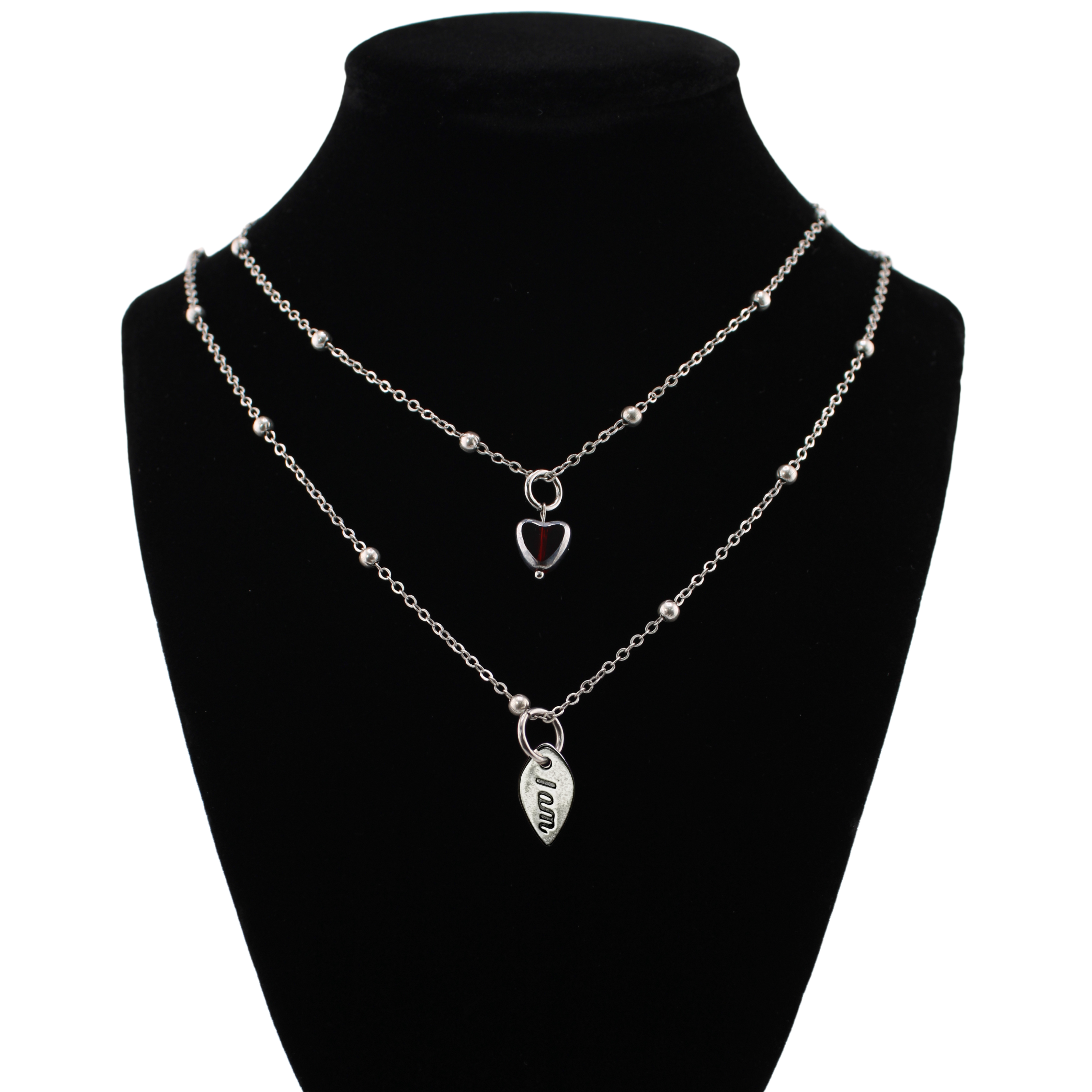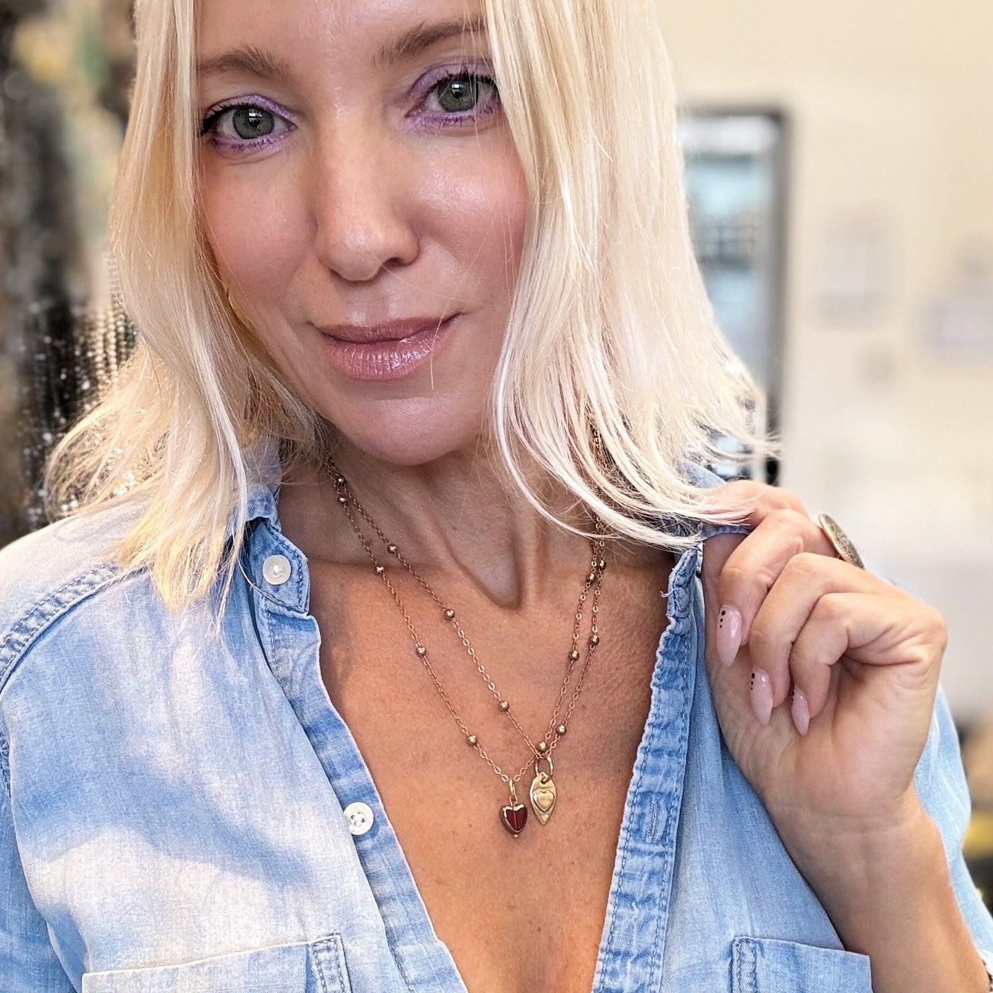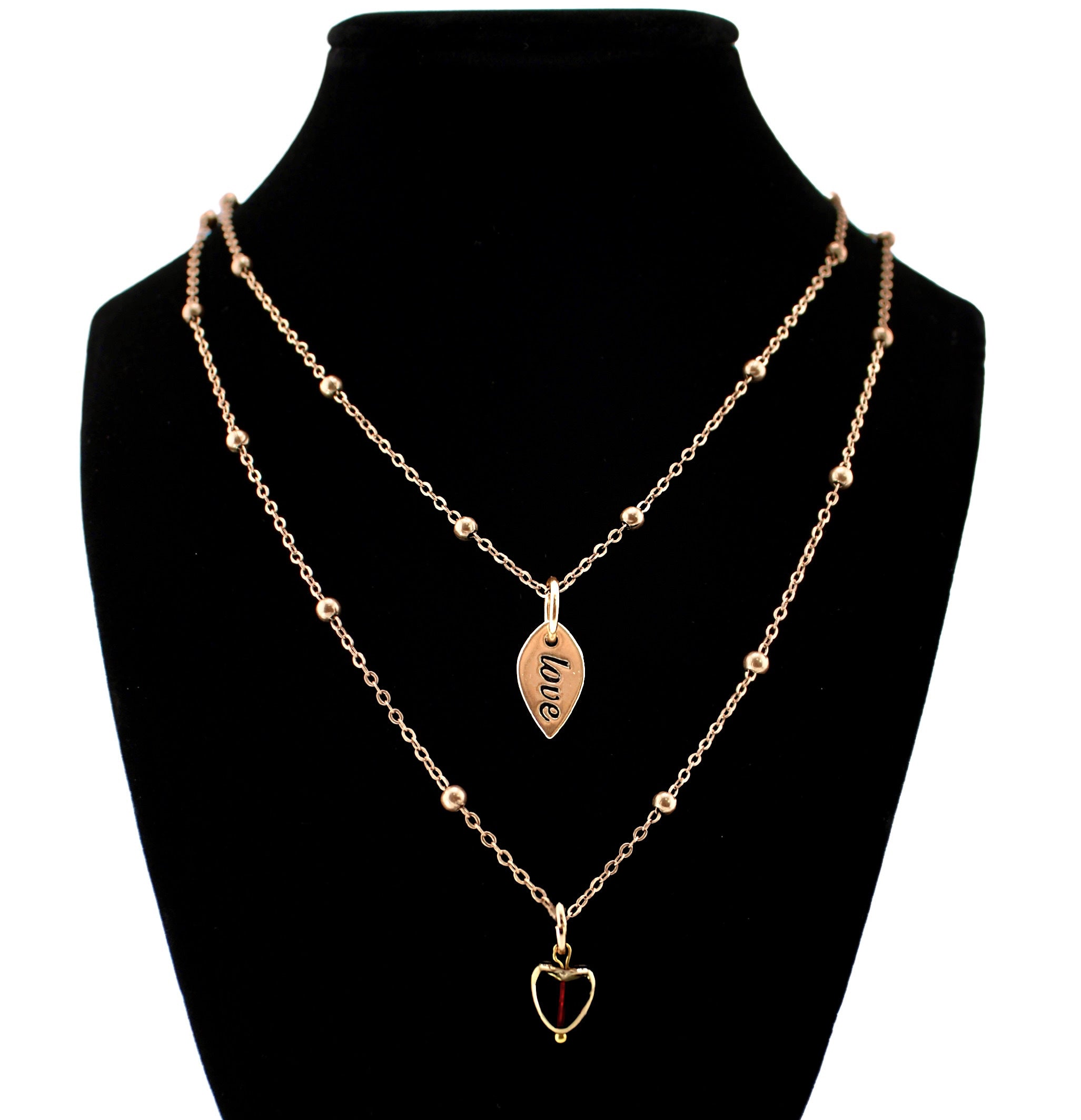 - 36" plated brass satellite chain with tag and crystal heart accent