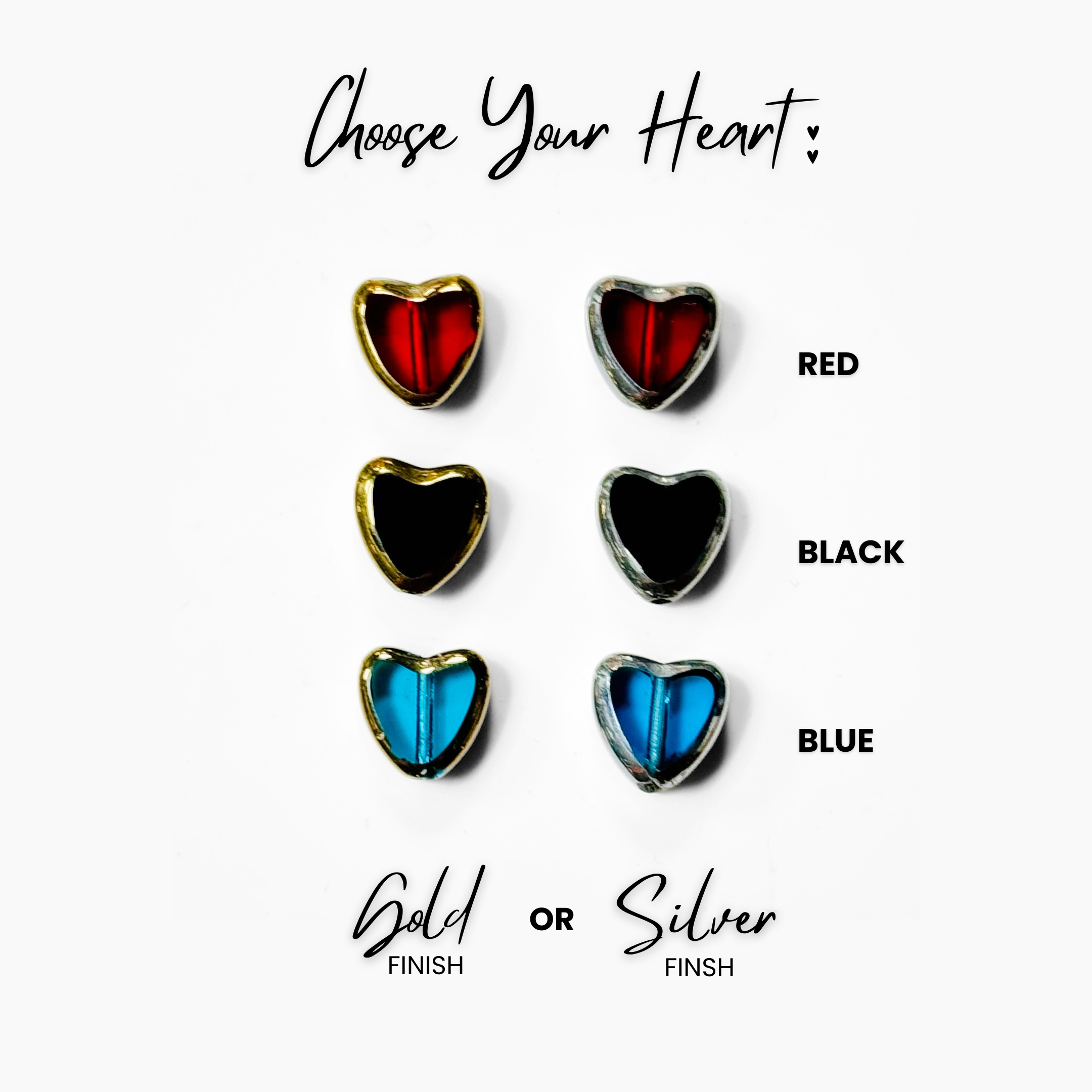 - Choose between 3 crystal heart colors: red, blue, OR black