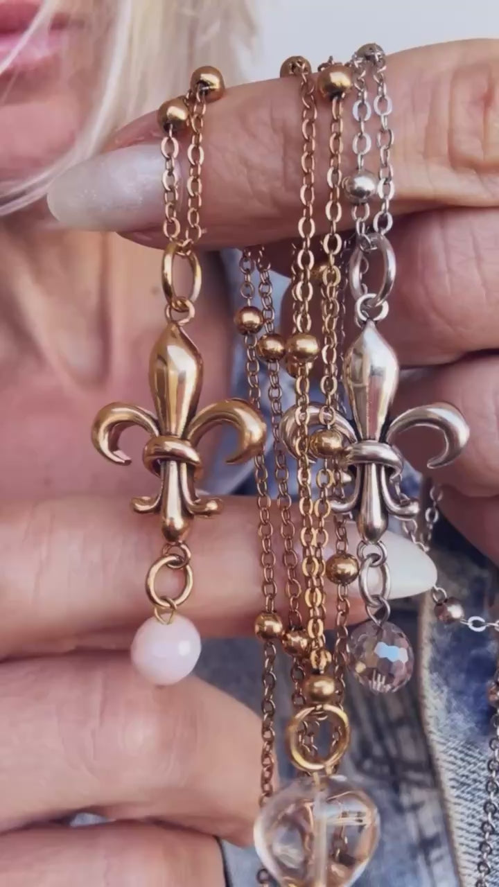 A little love goes a long way. This necklace combines classic symbolism with modern minimal style. Featuring a fleur-de-lis pendant inscribed with “LOVE” and set on our dainty chain, this piece was made for layering, gifting, and everyday wear. Choose between two finish styles, antique gold or silver, and let this necklace become your daily reminder that love is always in style.