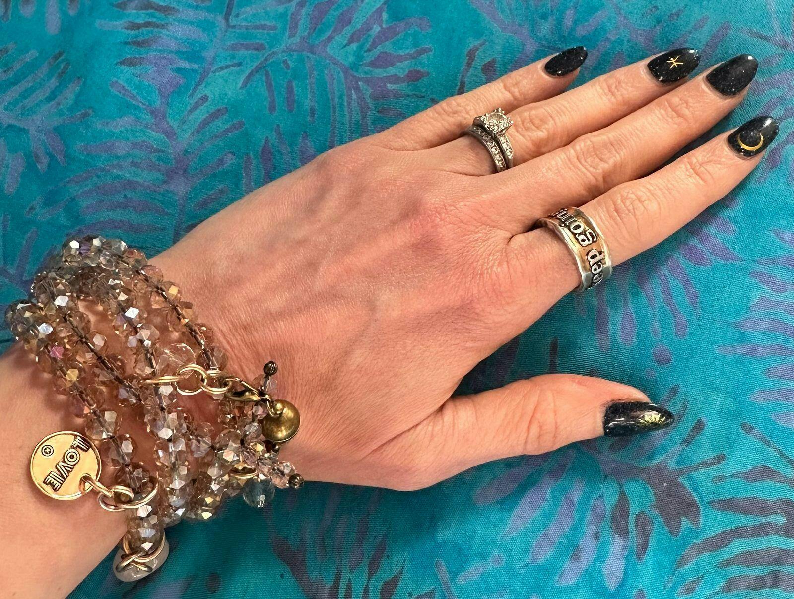 Katia loves to embrace all of the imperfections that occur when working with organic materials. Due to the crystals and crystal beads being an organic material, shape, clarity, and color vary and may have pits, cracks, and other marks that Mother Nature provided to add interest and beauty.
