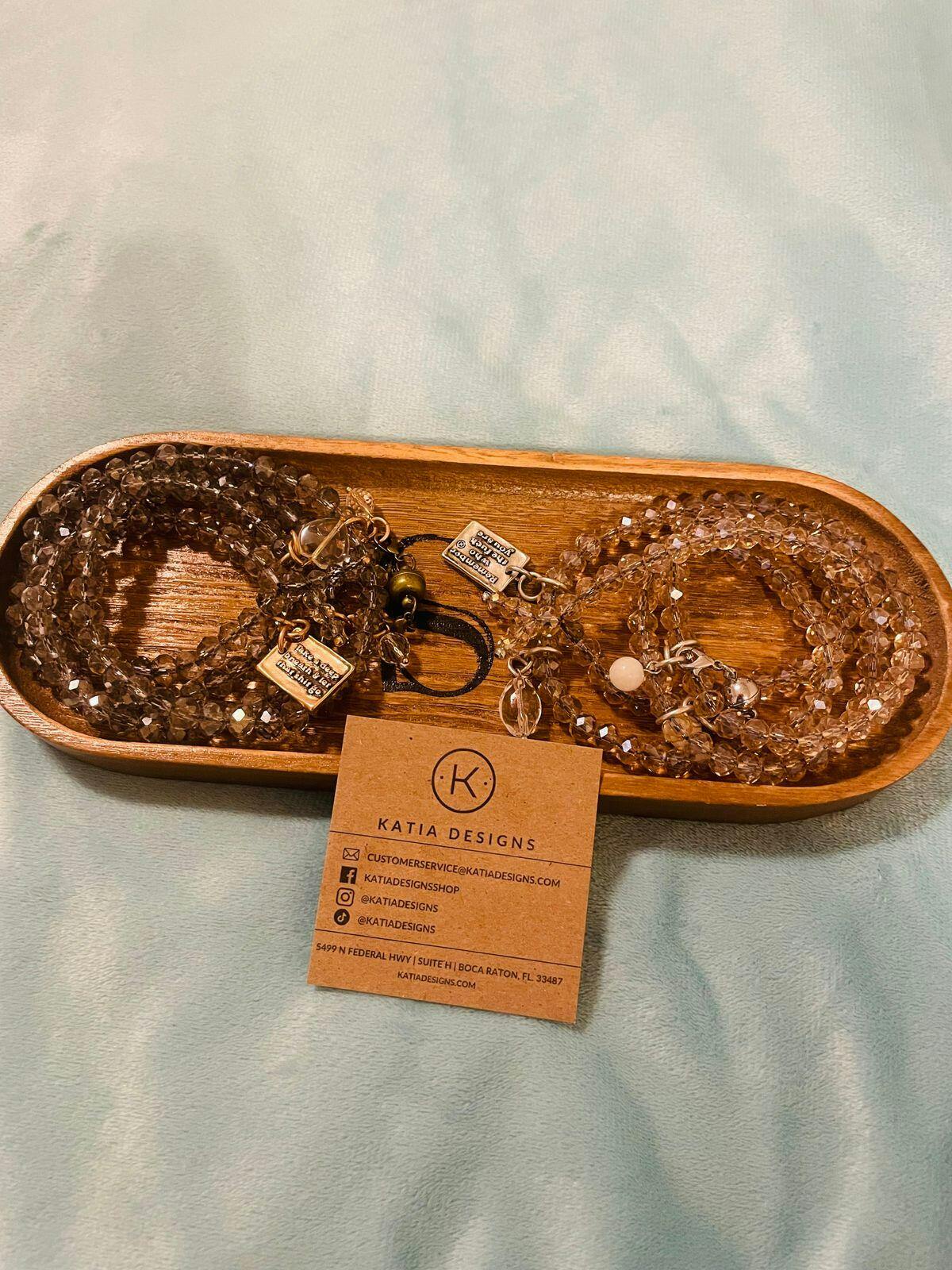 Katia loves to embrace all of the imperfections that occur when working with organic materials. Due to the crystals and crystal beads being an organic material, shape, clarity, and color vary and may have pits, cracks, and other marks that Mother Nature provided to add interest and beauty.