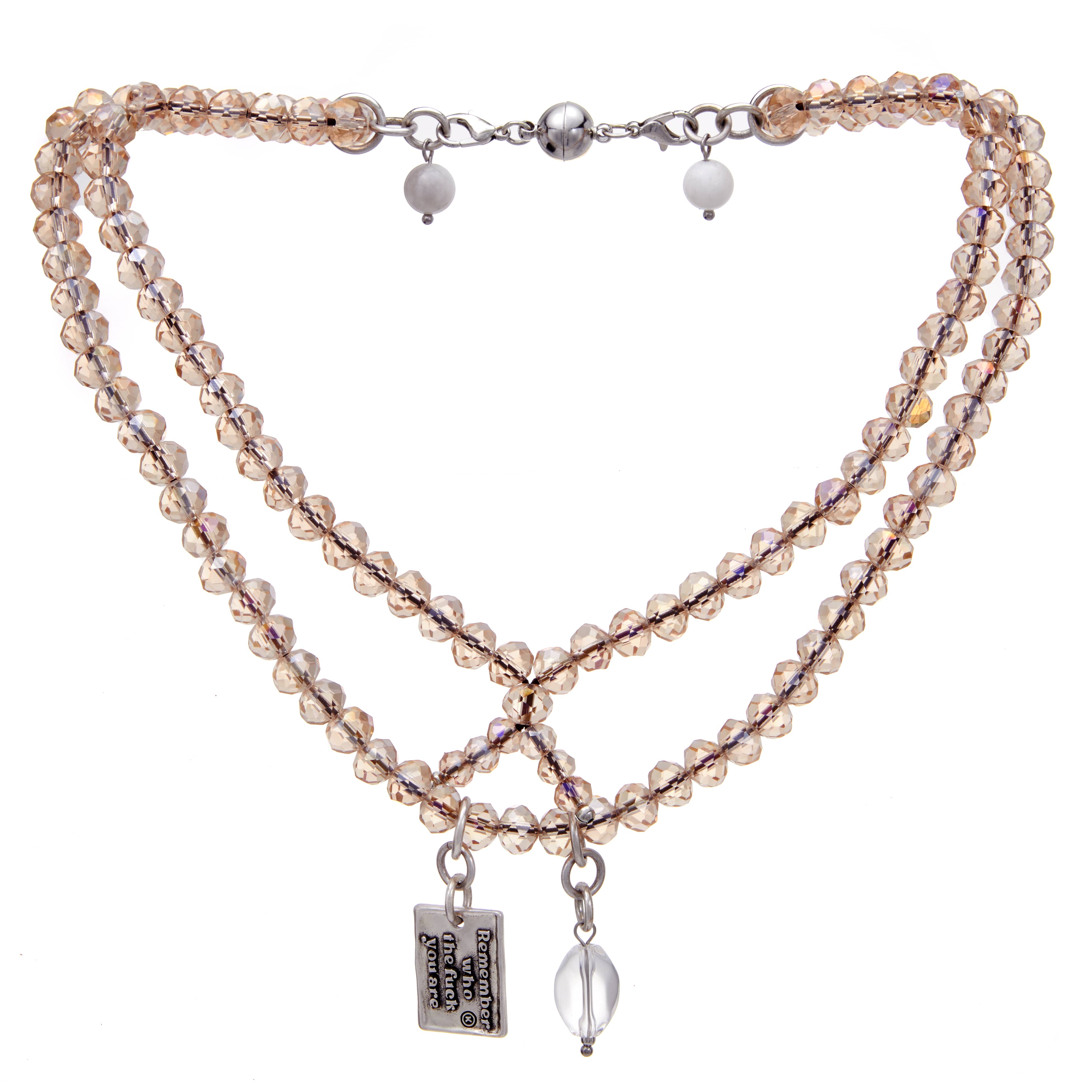 - 8mm faceted beige crystal Boho with silver finish pendant