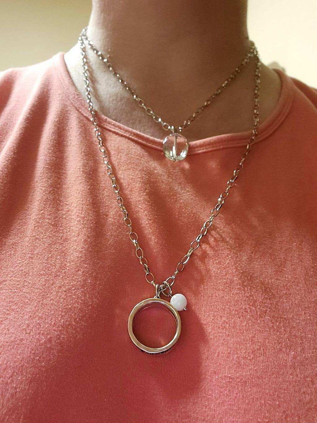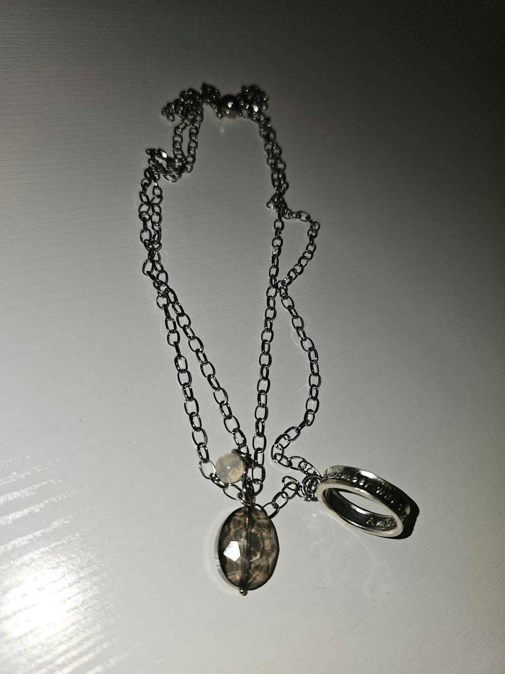 ◦ Silver pendant/chain • faceted smoky crystal • moonstone accent