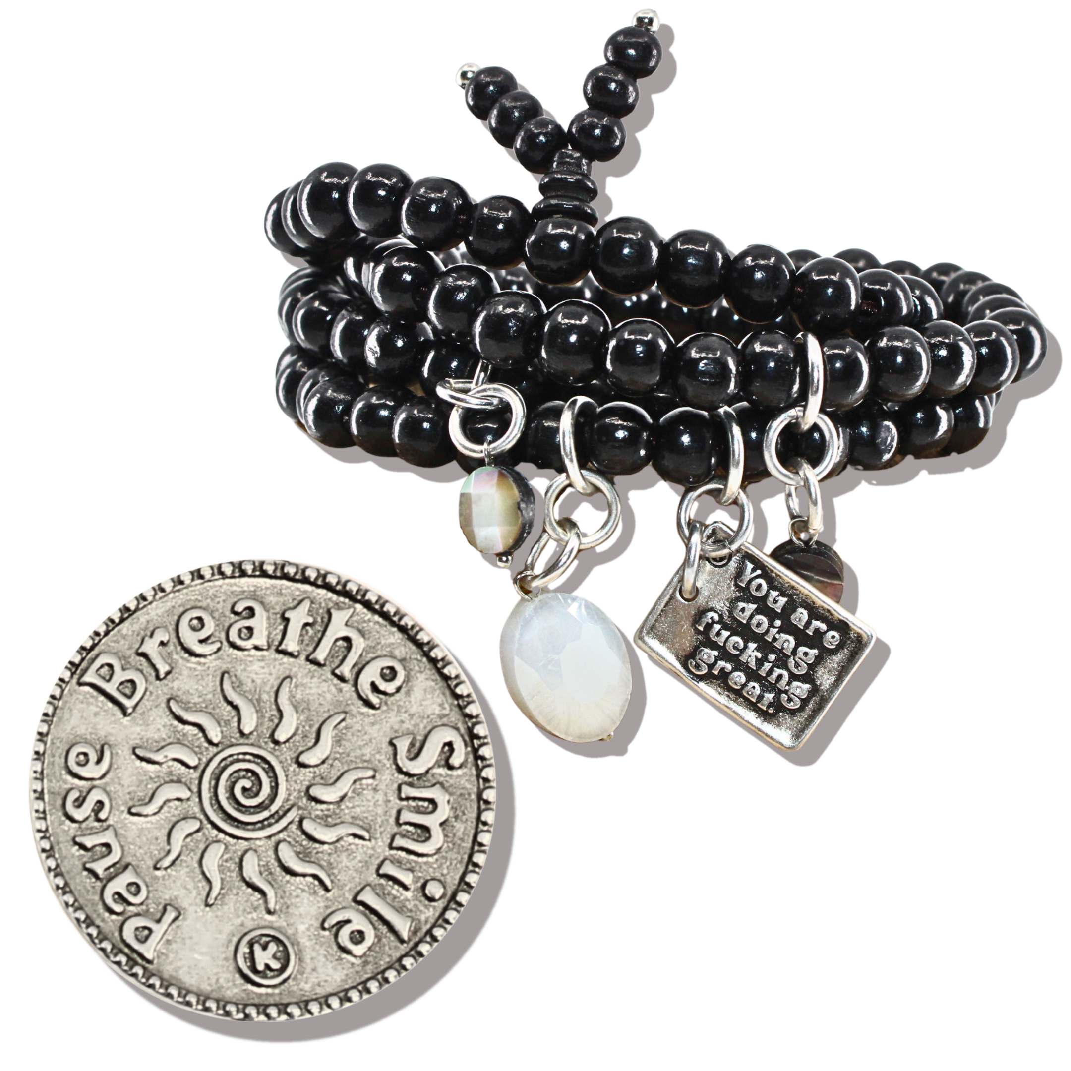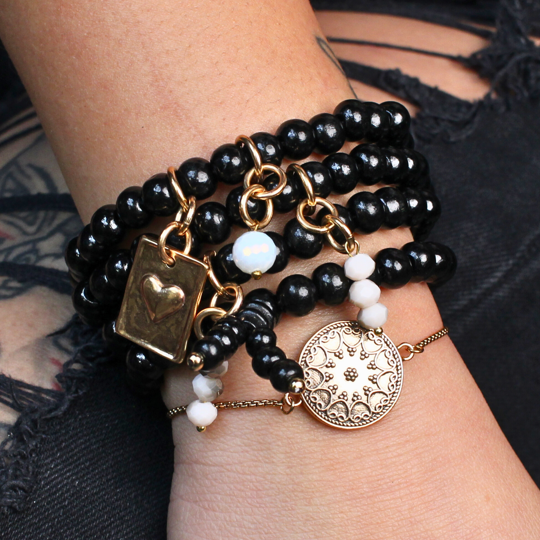 For the woman who leads with joy and follows her own rhythm ā the Wild Heart Set is a celebration of freedom, laughter, and love.TheĀ Stay Wild Moon Child black wood Boho wrap meets theĀ Live Love Laugh adjustable bracelet in this playful, heart-lifting duo made to inspire freedom and joy. This gift-set carries the spirit of adventure and the art of not taking life too seriously. Itās your reminder to laugh often, love deeply, and stay true to the wild soul within you.Wear it as a symbol of pure authenticity ā the untamed, radiant energy that makes you you. Stay wild. Laugh loudly. Love endlessly.