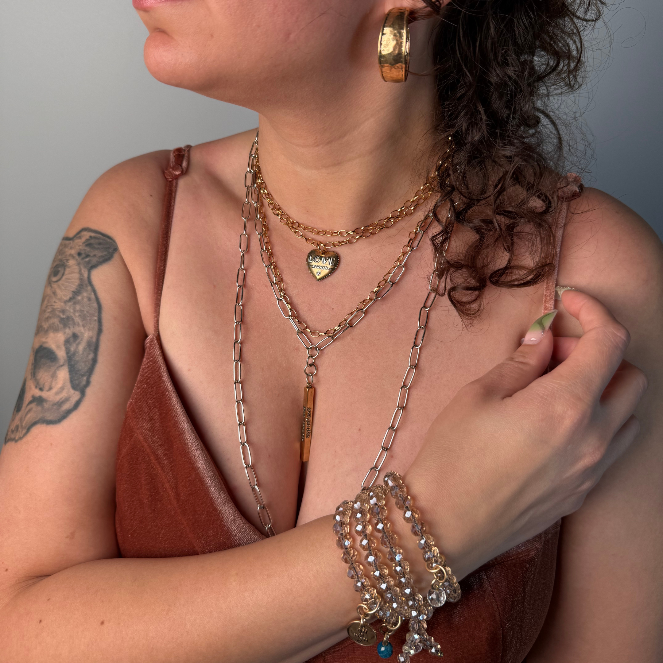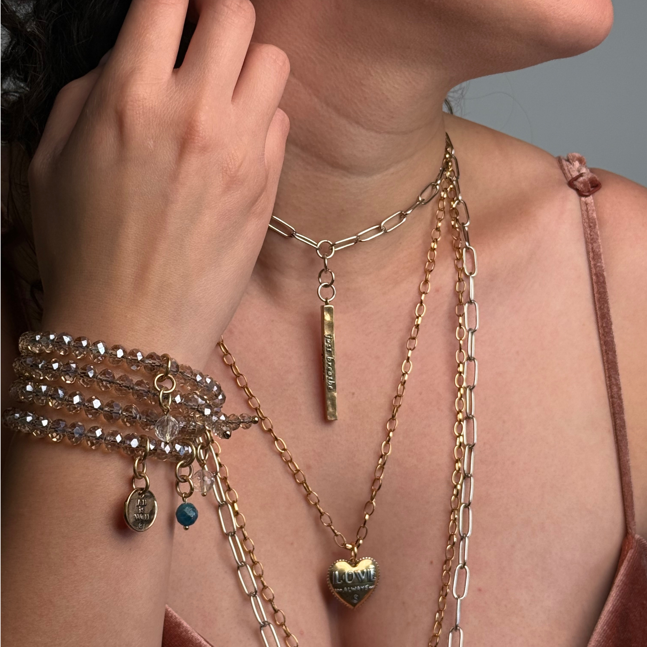 Katia loves to embrace all of the imperfections that occur when working with organic materials.Ā Due to the crystals and crystal beads being an organic material, shape, clarity, and color vary and may have pits, cracks, and other marks that Mother Nature provided to add interest and beauty.Ā Ā