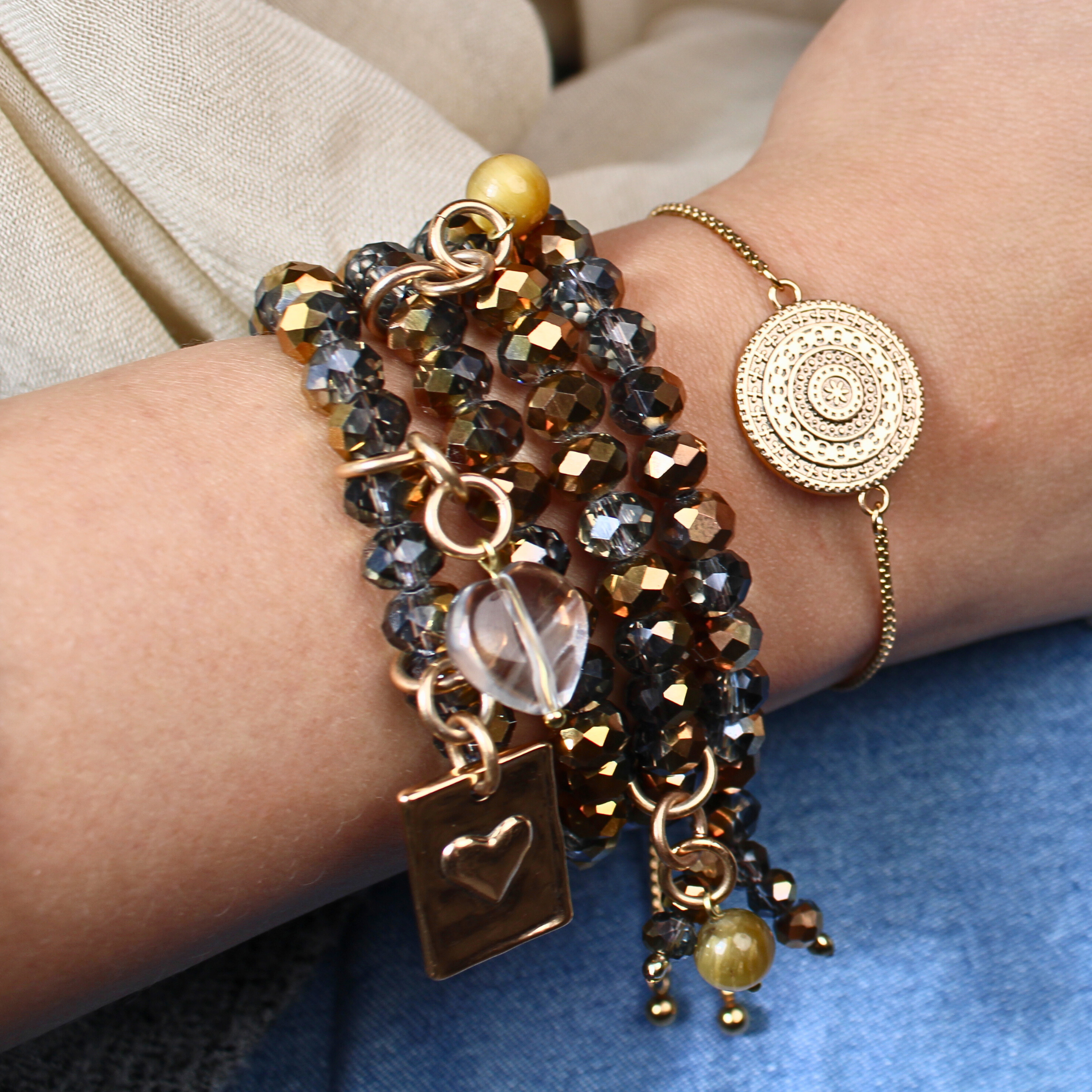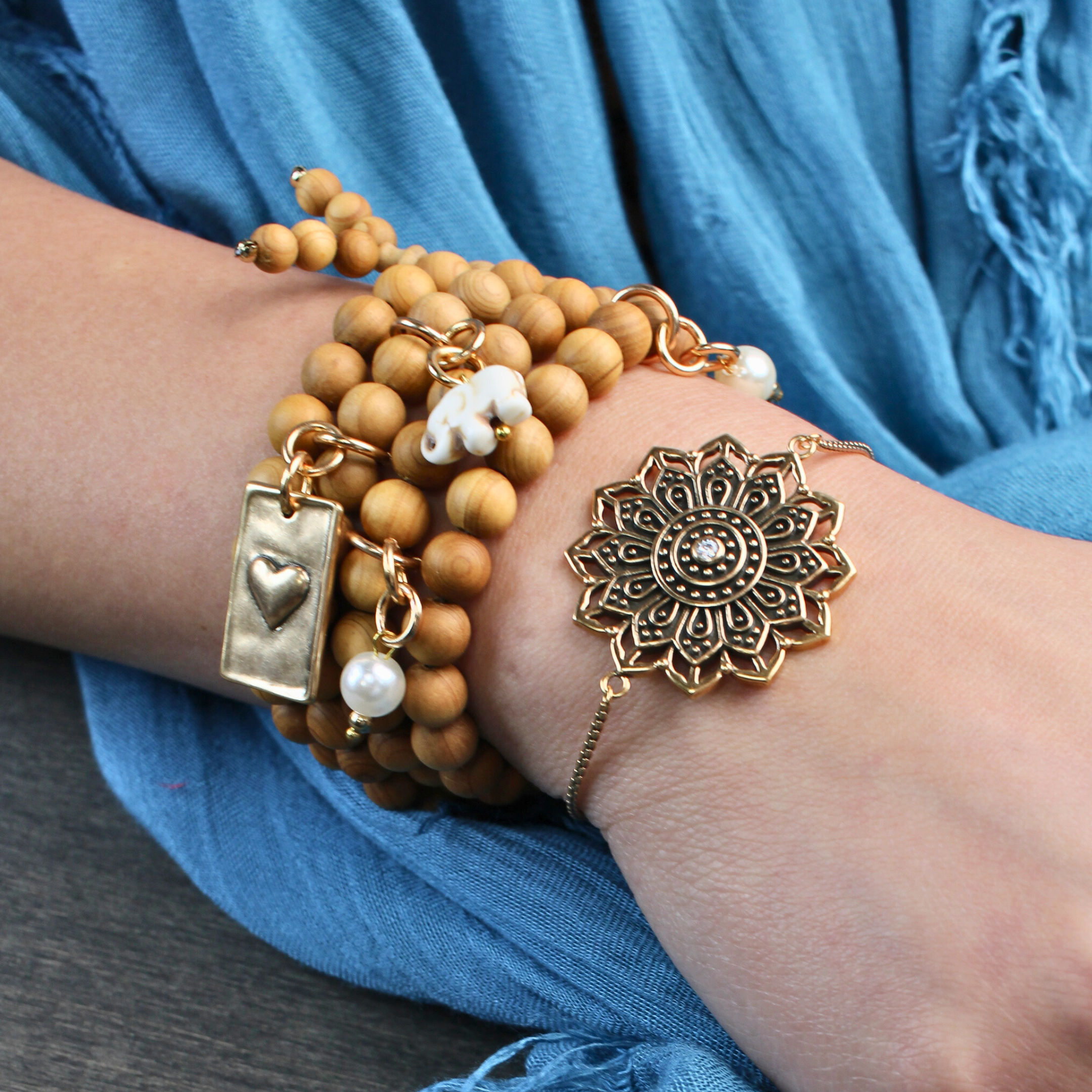 - Live Love Laugh Adjustable Chain Bracelet ā Gold finish box-chain bracelet with a detailed mandala pendant that radiates positivity, reminding you to find joy in every moment. Slider closure, 1.5mm box chain with central 35mm pendant.