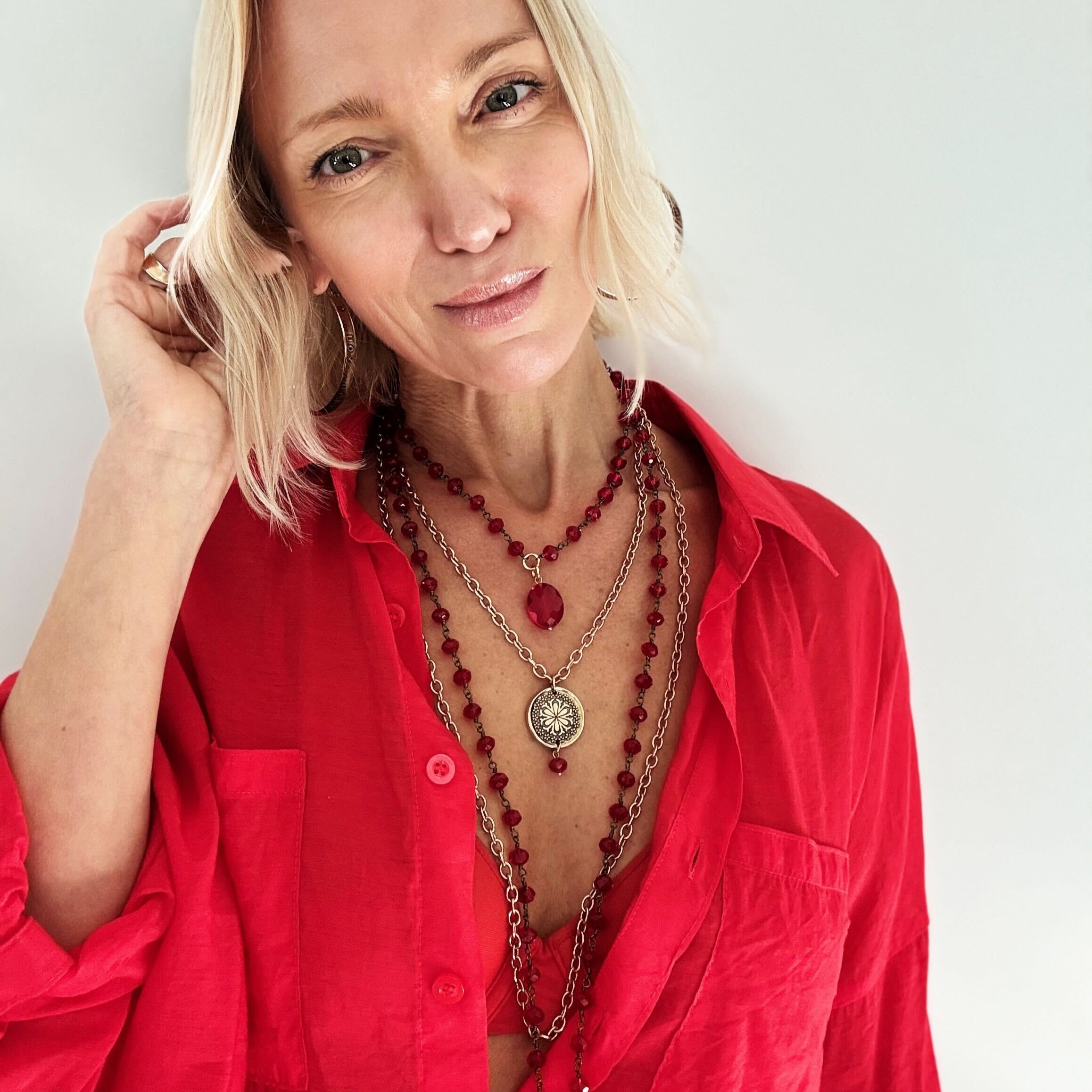 (1) 48” 7mm chain with pendant and 8mm red barrel accent