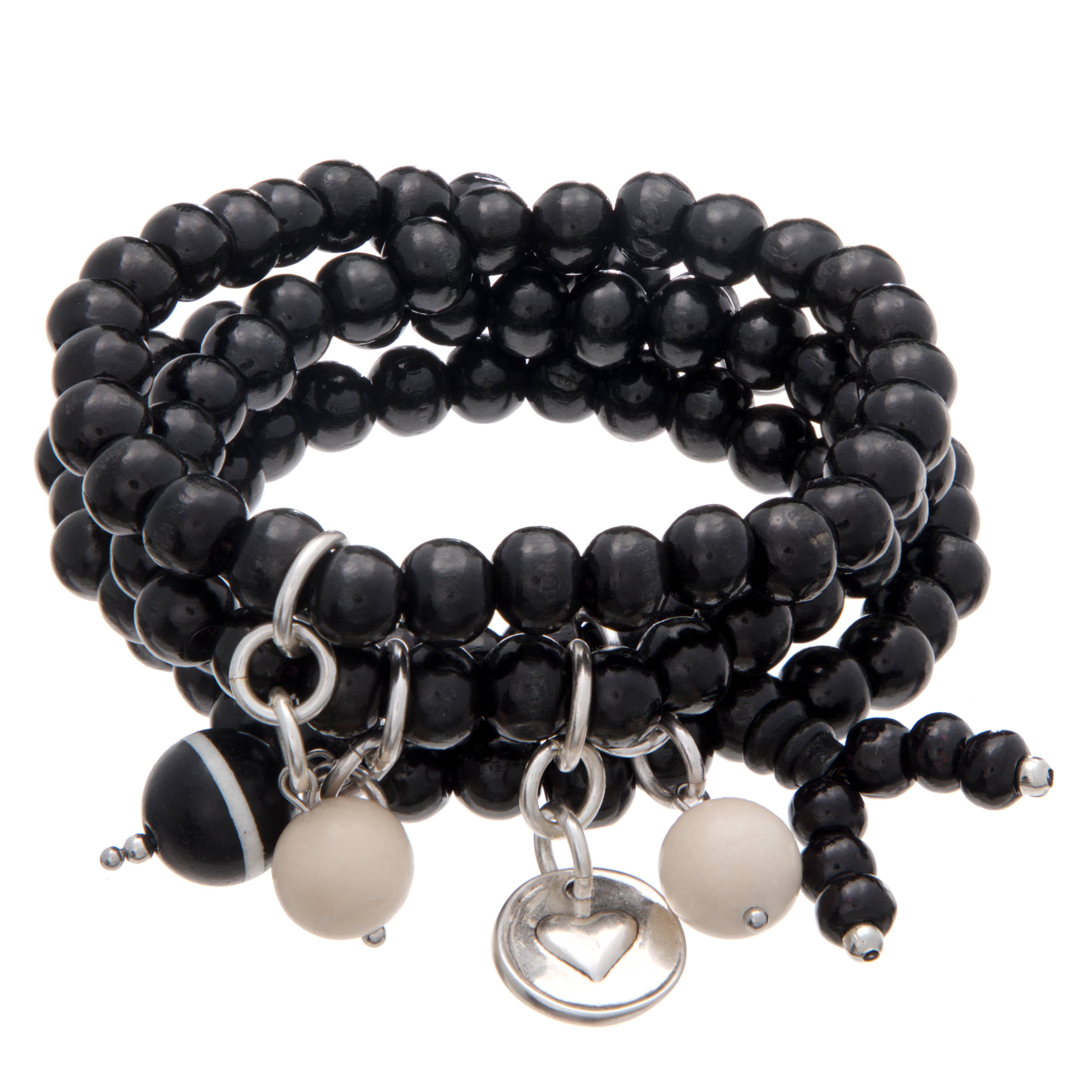 - 8mm black wooden Boho with silver finish pendant