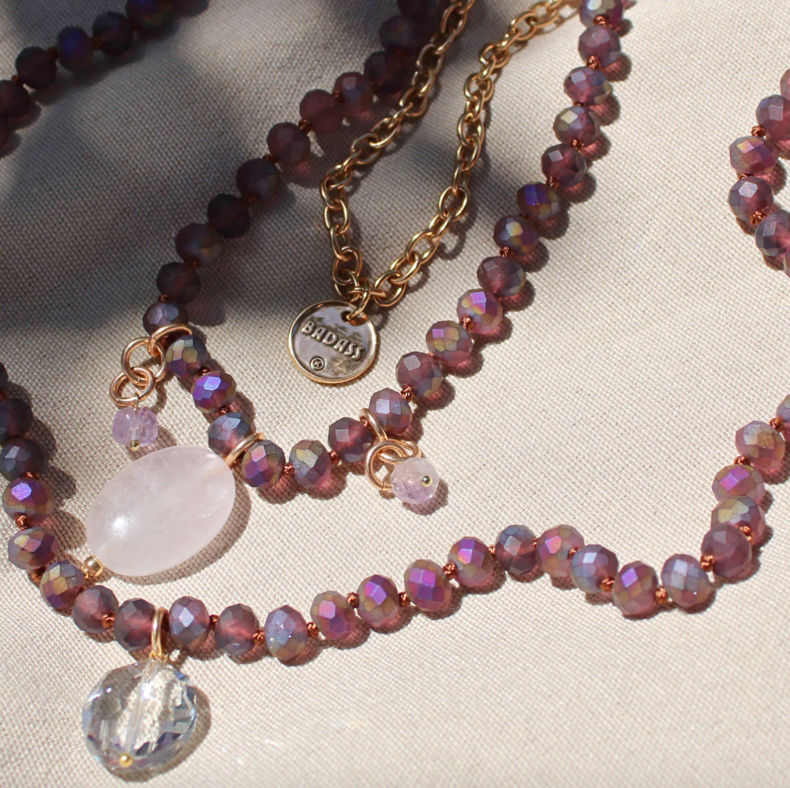I'm OBSESSED. The little heart chain is so incredibly versatile, I find I'm wearing it with everything, it's a great mix/match piece for literally all my other Katia designs. And the crystals? I mean let's add some bling to a T-shirt and casual outfit. It brings a smile to my face and it really can be dressed up or down. It goes with everything and takes on slightly different hues depending on what I wear it with. The length too makes me so happy, I LOVE the long necklaces and the ability to layer up the crystals. This one became an instant favorite and "go to" set for me.