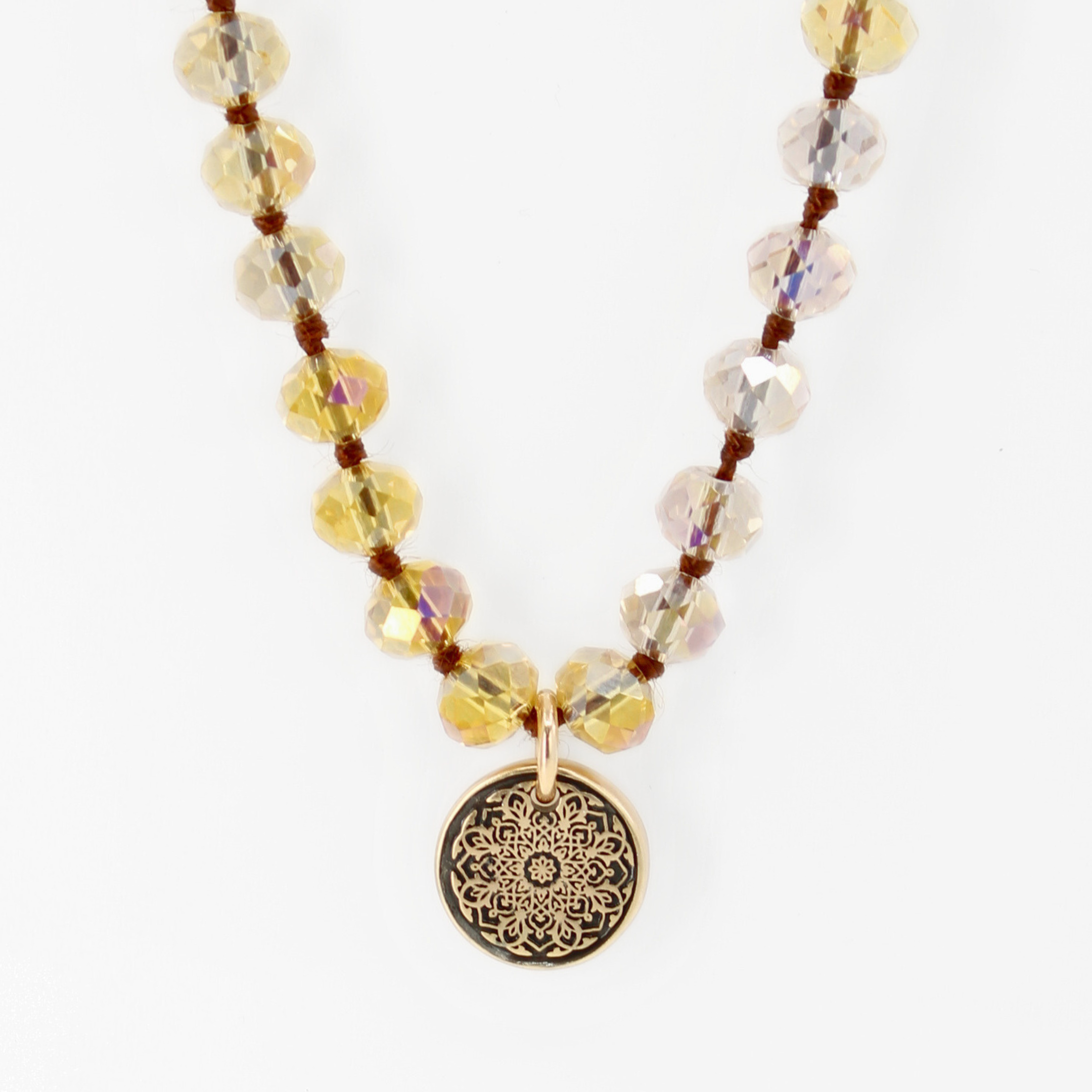 - 36" Fusion necklace with 8mm faceted topaz/champagne AB crystal beads