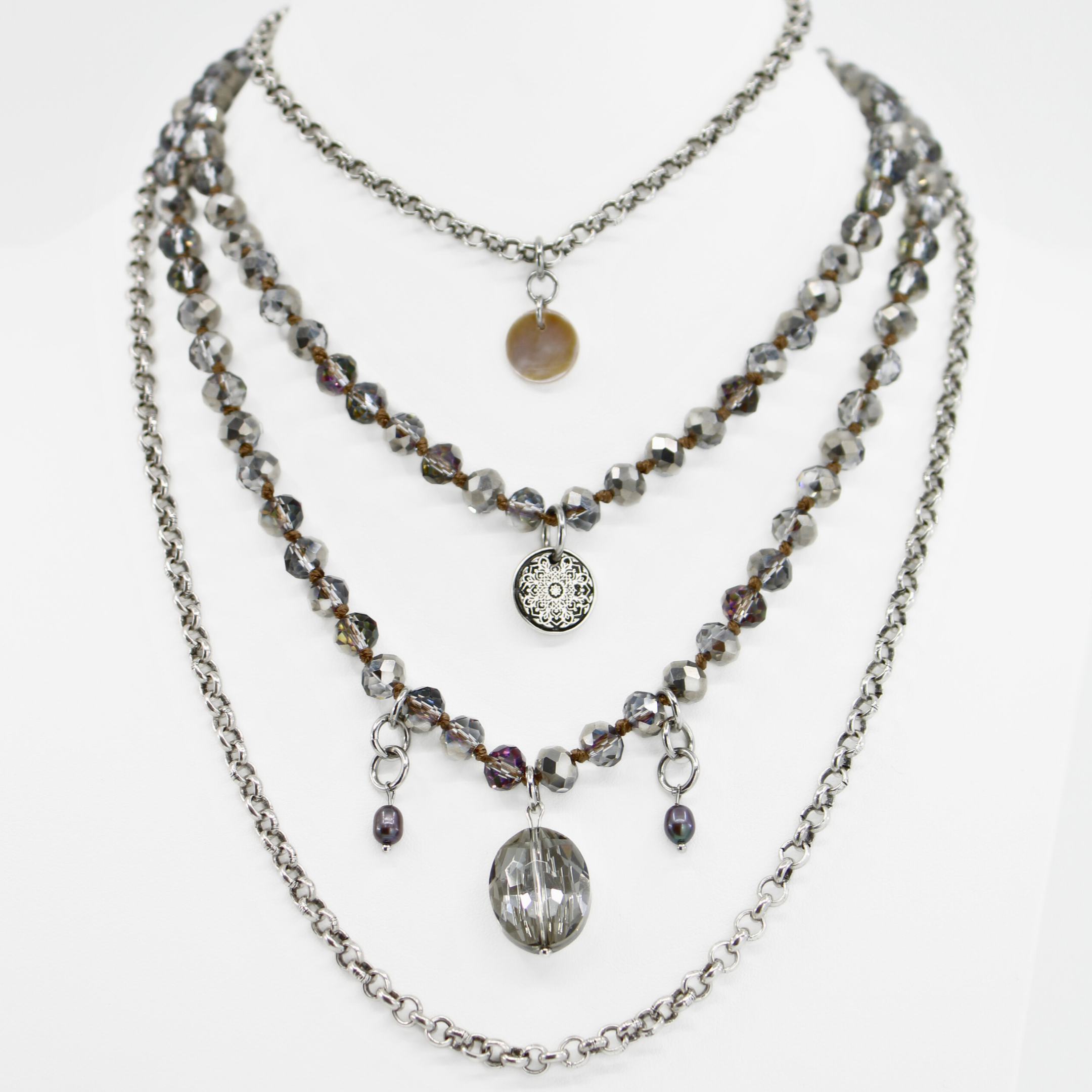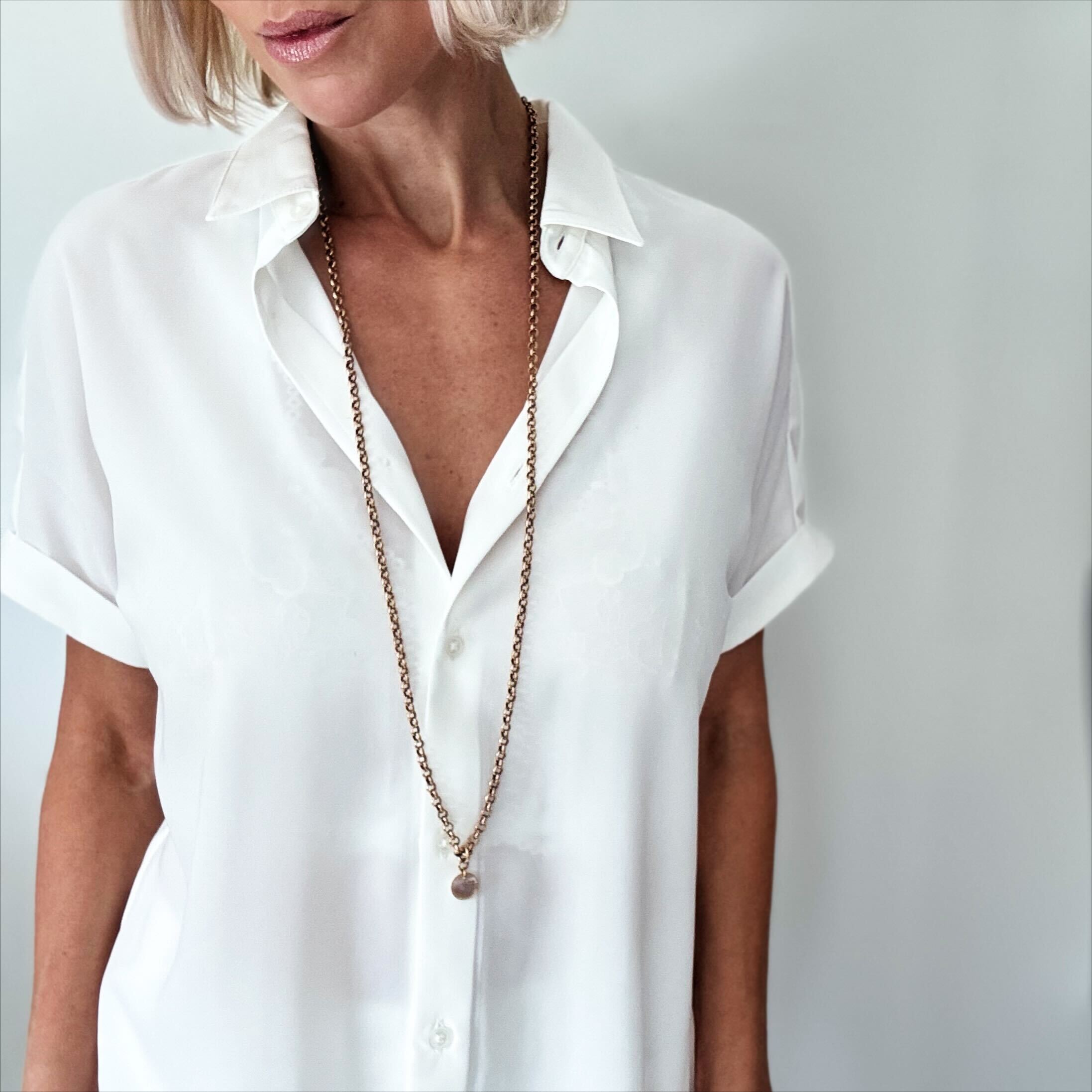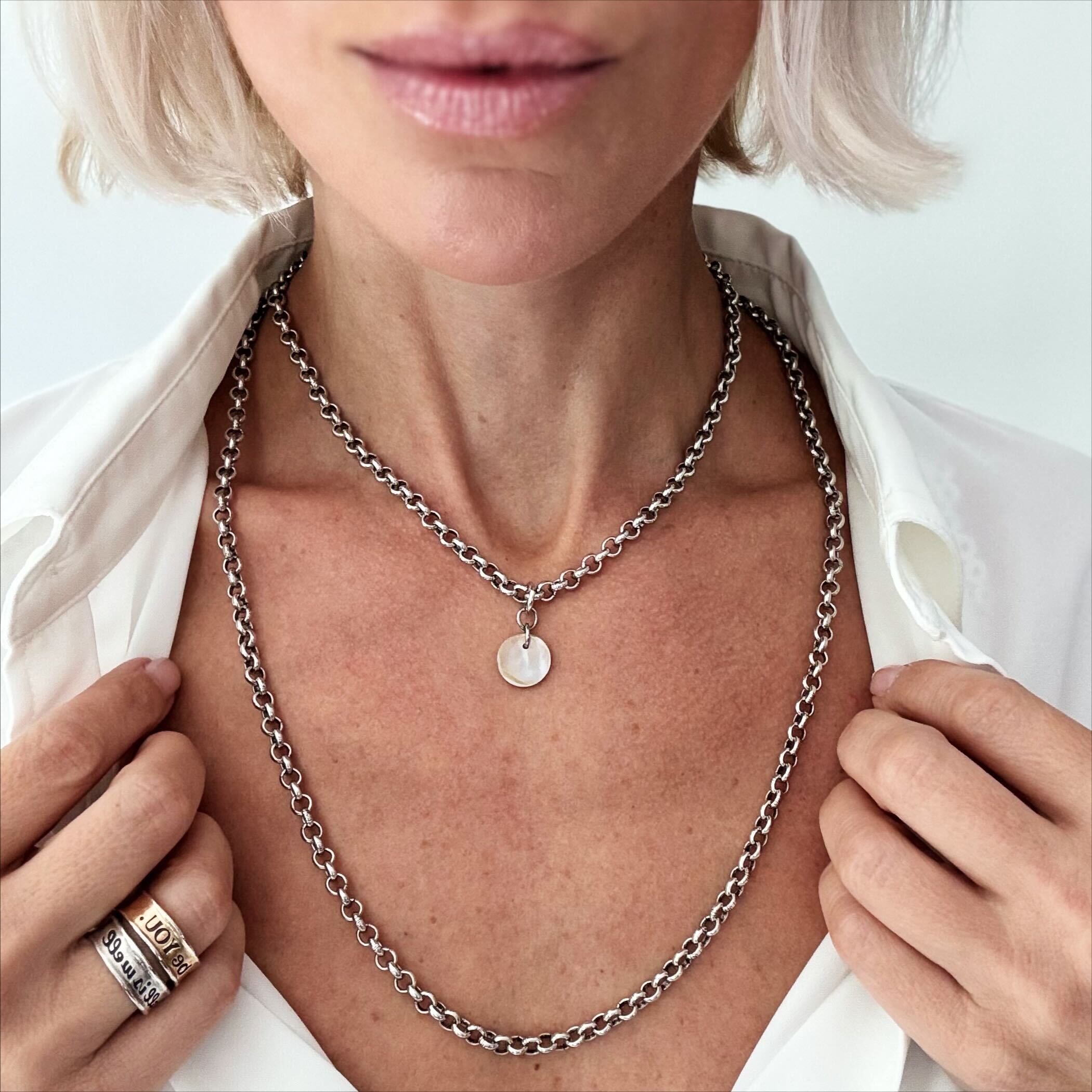 - 36” 5mm rollo layering chain with 12mm pearl disc charm