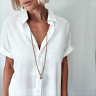 Regular Fusion Full Length: 36-48" **MODELS NECK MEASURES 15" IN CIRCUMFERENCE. PLEASE NOTE THAT NECKLACES MAY LAY DIFFERENTLY BASED ON YOUR MEASUREMENTS**
