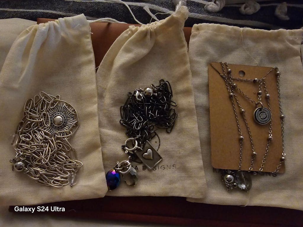 Storage: When taking off your jewelry at night, we are all tempted to leave our pieces where we won't forget to put them back on which is usually in our bathrooms. Bathrooms are the most humid area in our homes so to keep your pieces looking like new, store them in a dry place like a closet. We include a cloth pouch with each piece which is a great way to store your pieces when you aren't wearing them.