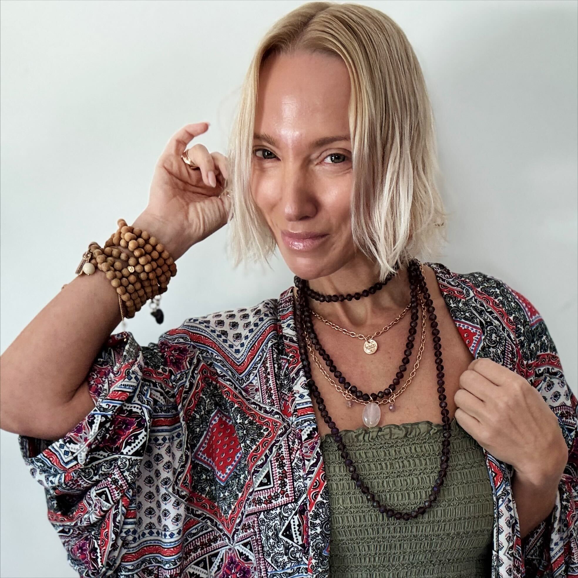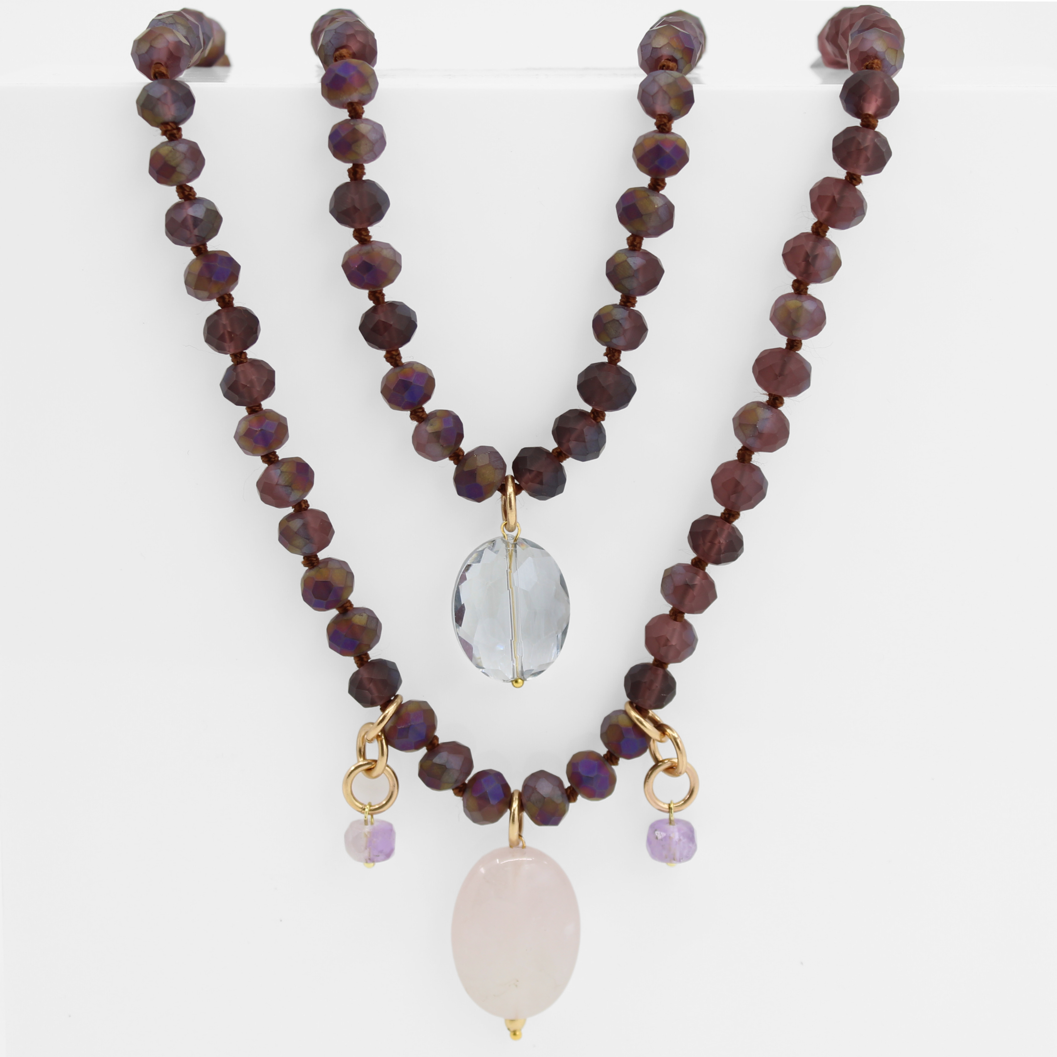 Katia loves to embrace all of the imperfections that occur when working with organic materials. Due to the crystals and crystal beads being an organic material, shape, clarity, and color vary and may have pits, cracks, and other marks that Mother Nature provided to add interest and beauty.