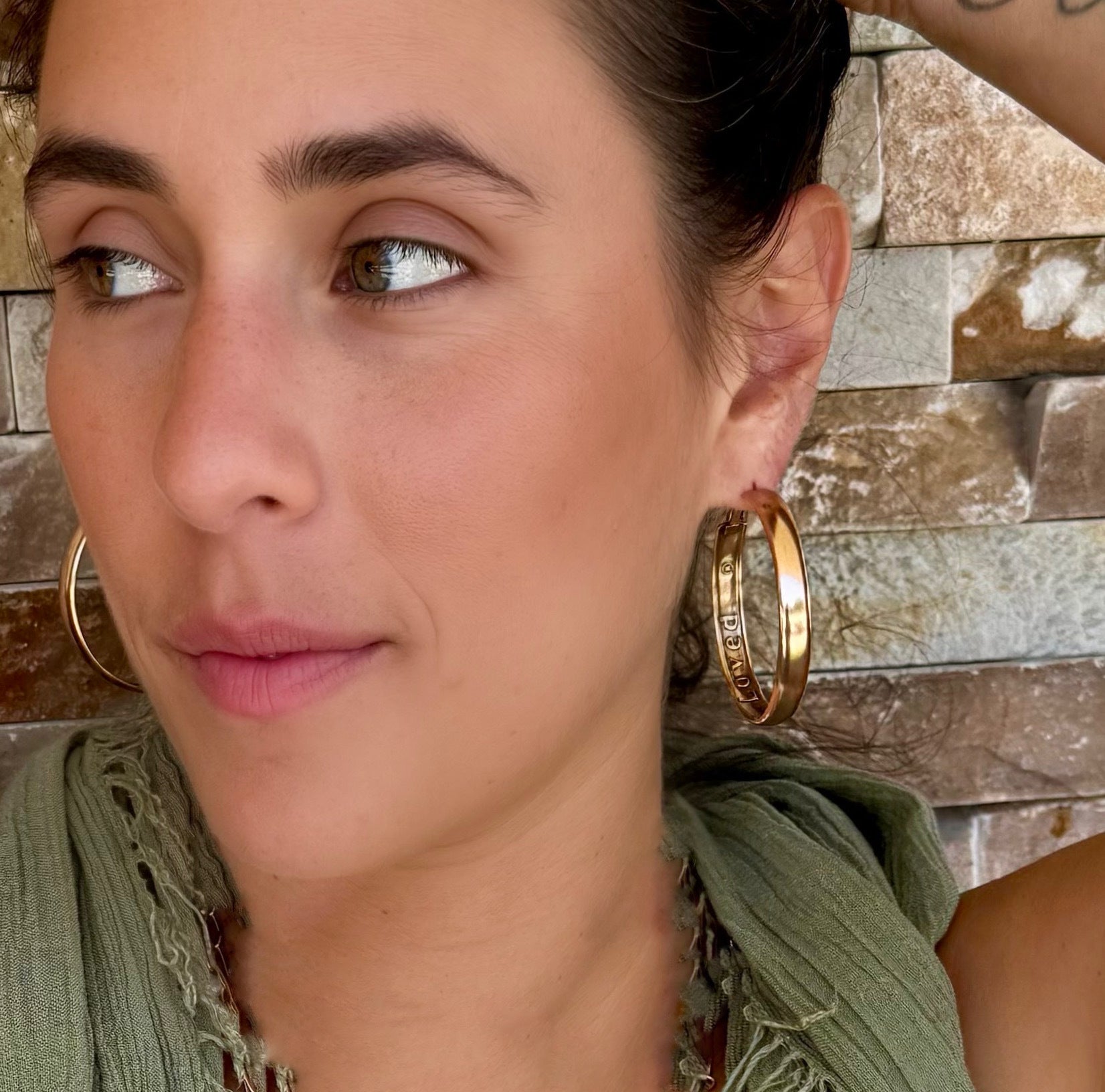 Our BGL hoop earrings - a revamped classic hoop design with lever-back closure - are perfect for any occasion, from casual outings to formal events. With a versatile style that complements any look, you can easily adding a touch of glamour to any outfit. Each pair features one of our uplifting messages, "BLESSED GUIDED LOVED" inscribed on the inside, capturing a free-spirited, Boho vibe. Designed for everyday wear, our earrings are lightweight and comfortable, making them the perfect accessory for all-day elegance.