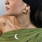 Our Moon layering chain paired with our Just Breathe hammered hoops for effortless balance and shine.