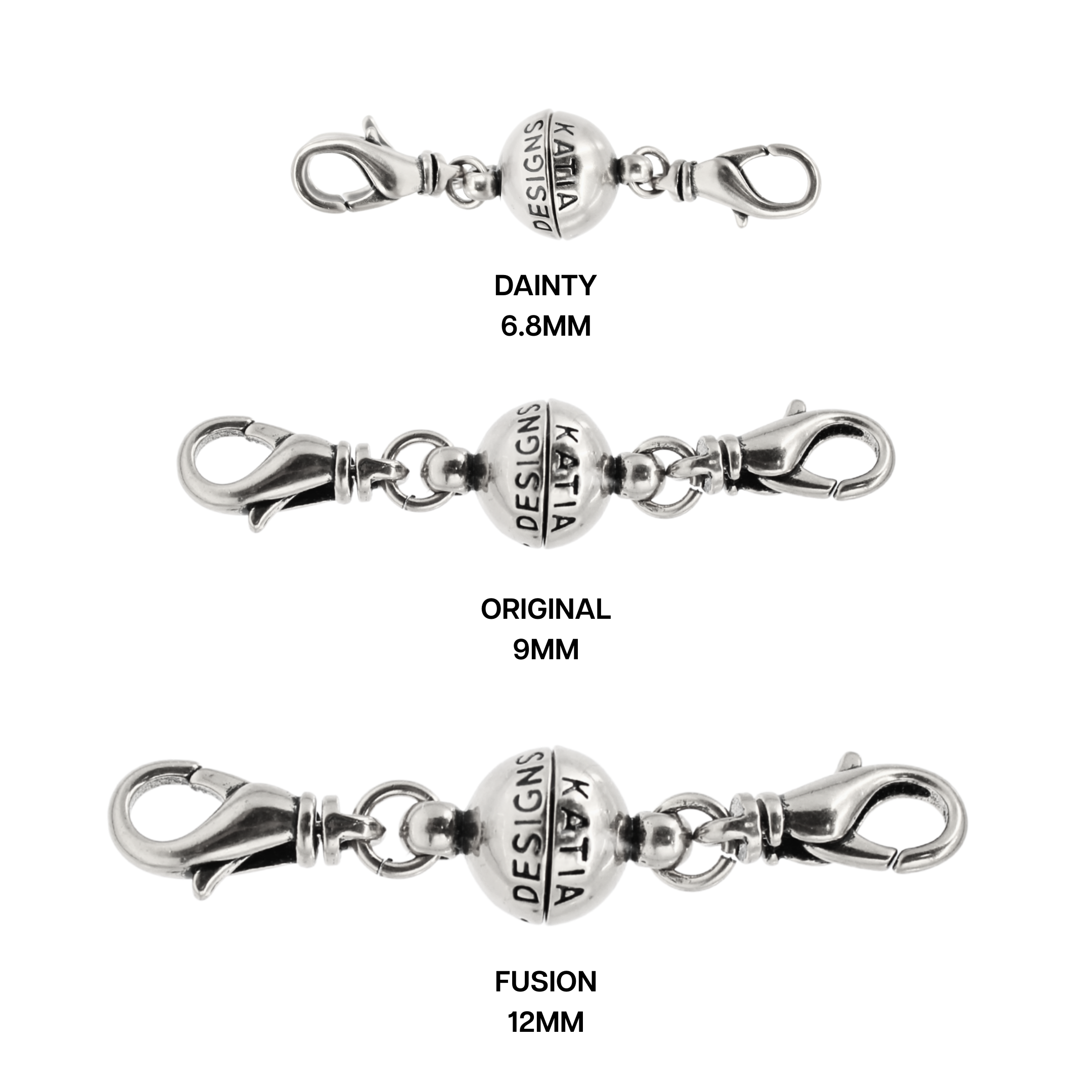 Upgrade your necklace game with our patented magnetic Clasp Bundle, which includes 3 clasps, 1 of each of our signature sizes: