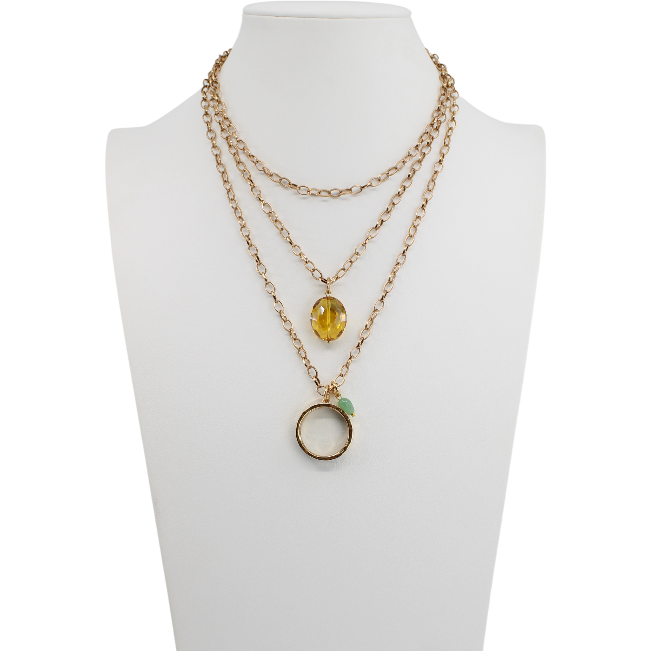 ◦ Antique gold finish with topaz crystal and aventurine heart