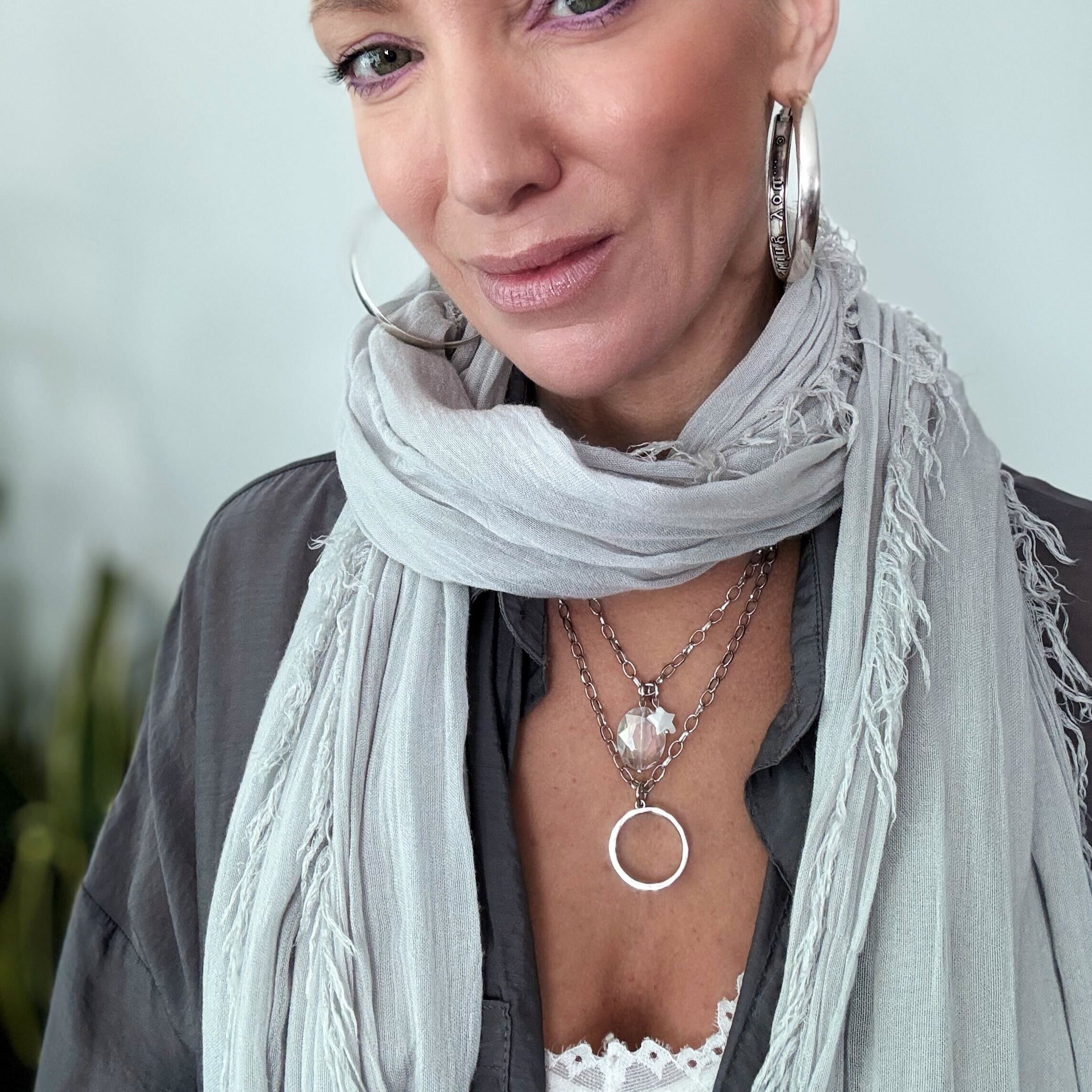 Katia loves to embrace all of the imperfections that occur when working with organic materials. Due to the crystals and crystal beads being an organic material, shape, clarity, and color vary and may have pits, cracks, and other marks that Mother Nature provided to add interest and beauty.