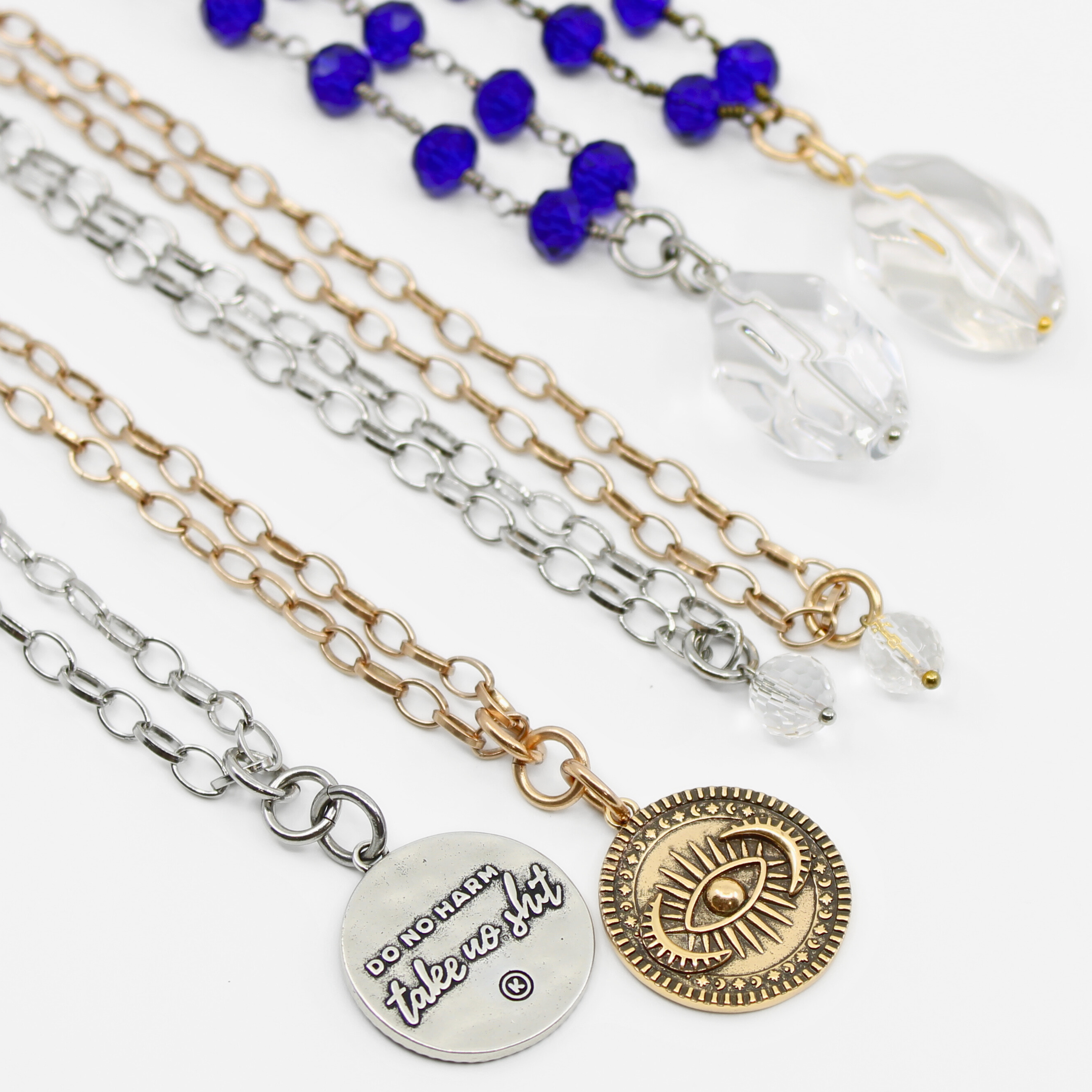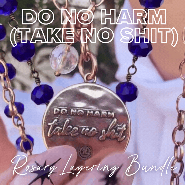 Do No Harm Take No Shit Rosary Necklace Layering Bundle