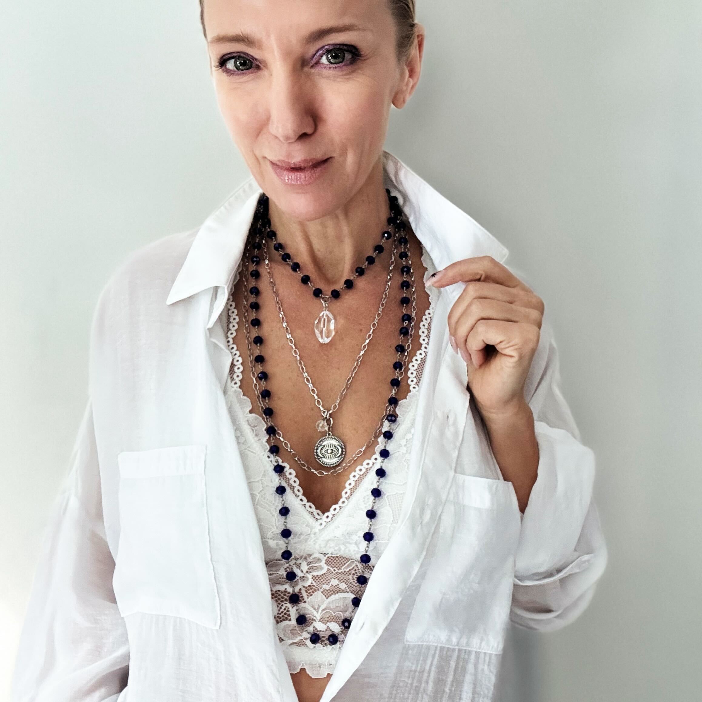 Katia loves to embrace all of the imperfections that occur when working with organic materials. Due to the crystals and crystal beads being an organic material, shape, clarity, and color vary and may have pits, cracks, and other marks that Mother Nature provided to add interest and beauty.