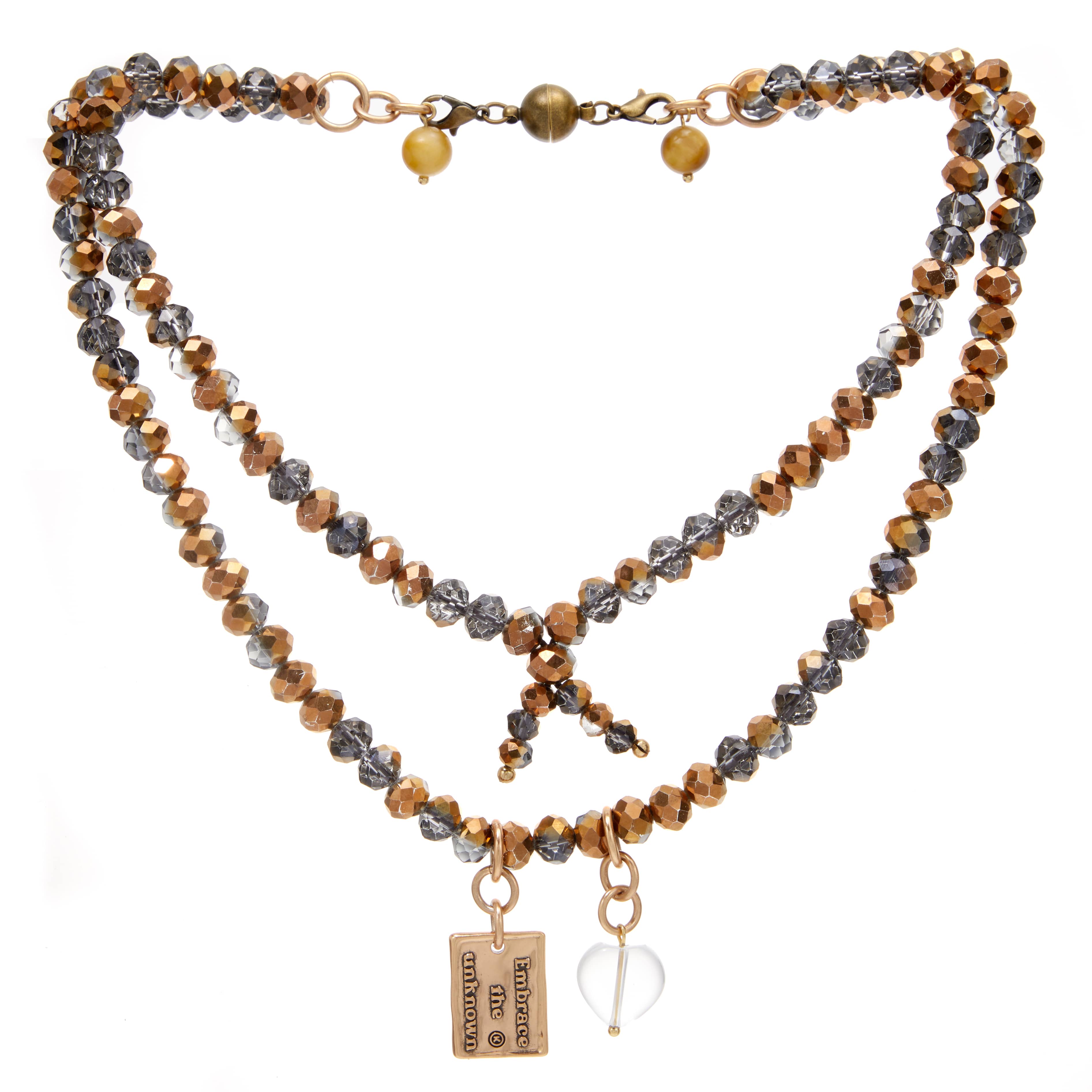 • Can be worn as a wrap bracelet, a single strand, or a double necklace.
