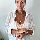 This 48" layering chain features a 7mm plated brass design and a hammered heart locket with a snap closure—perfect for holding something special. Each locket is inscribed with a meaningful message inside, making it more than just a statement piece.