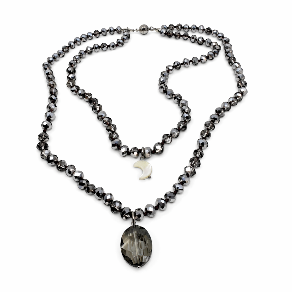 Gunmetal Crystal Necklace Product Details: